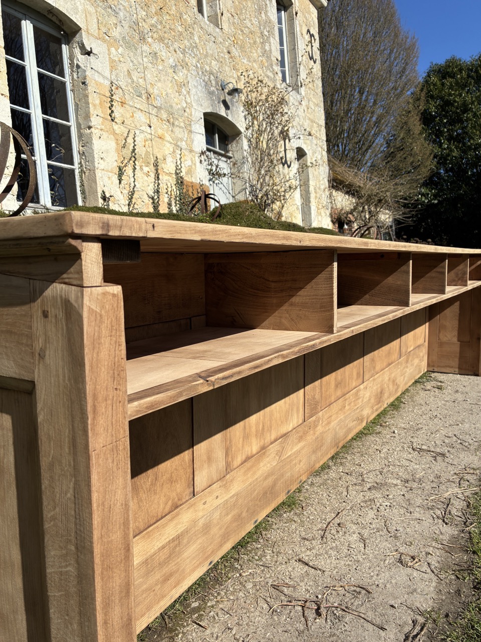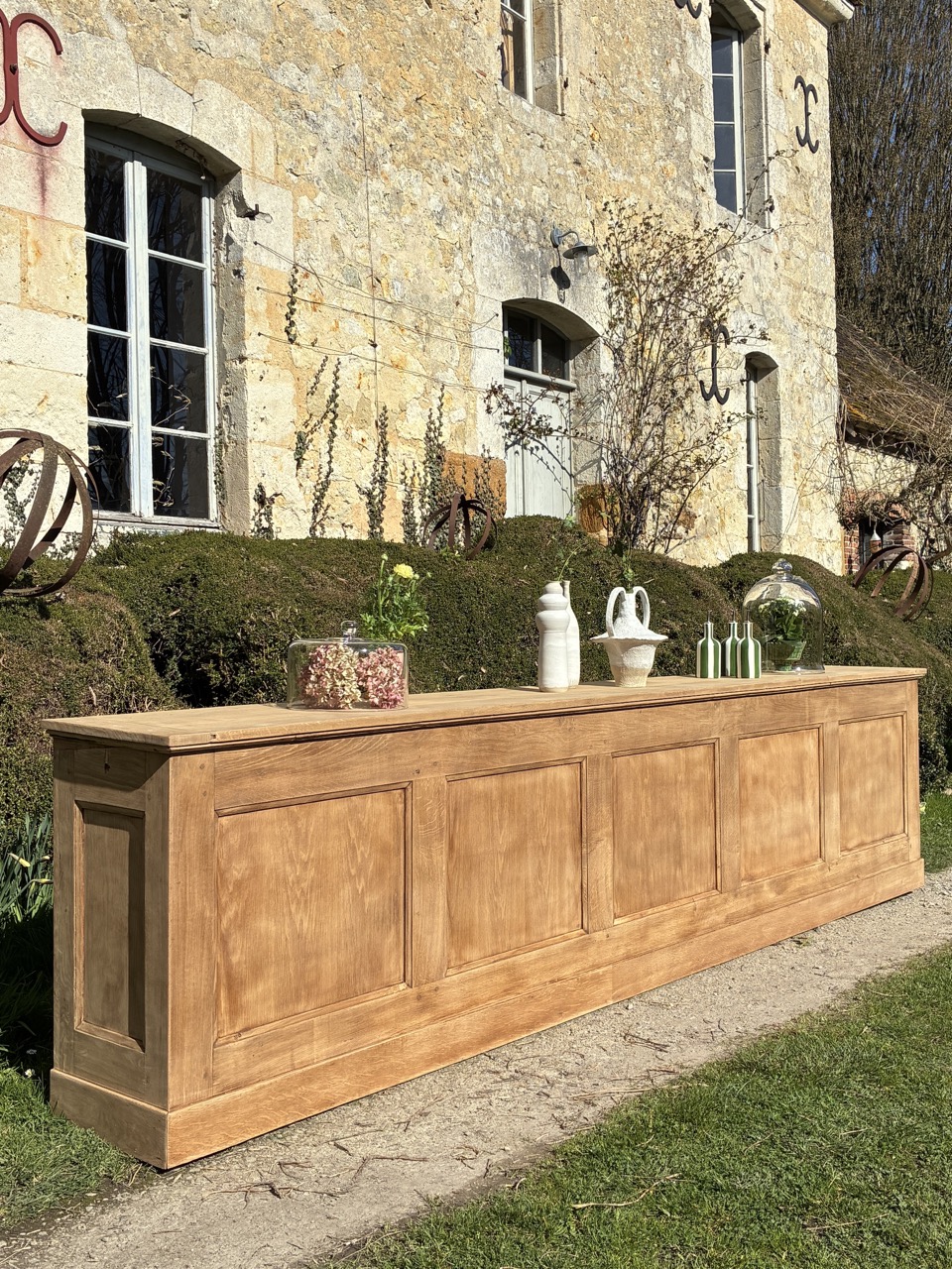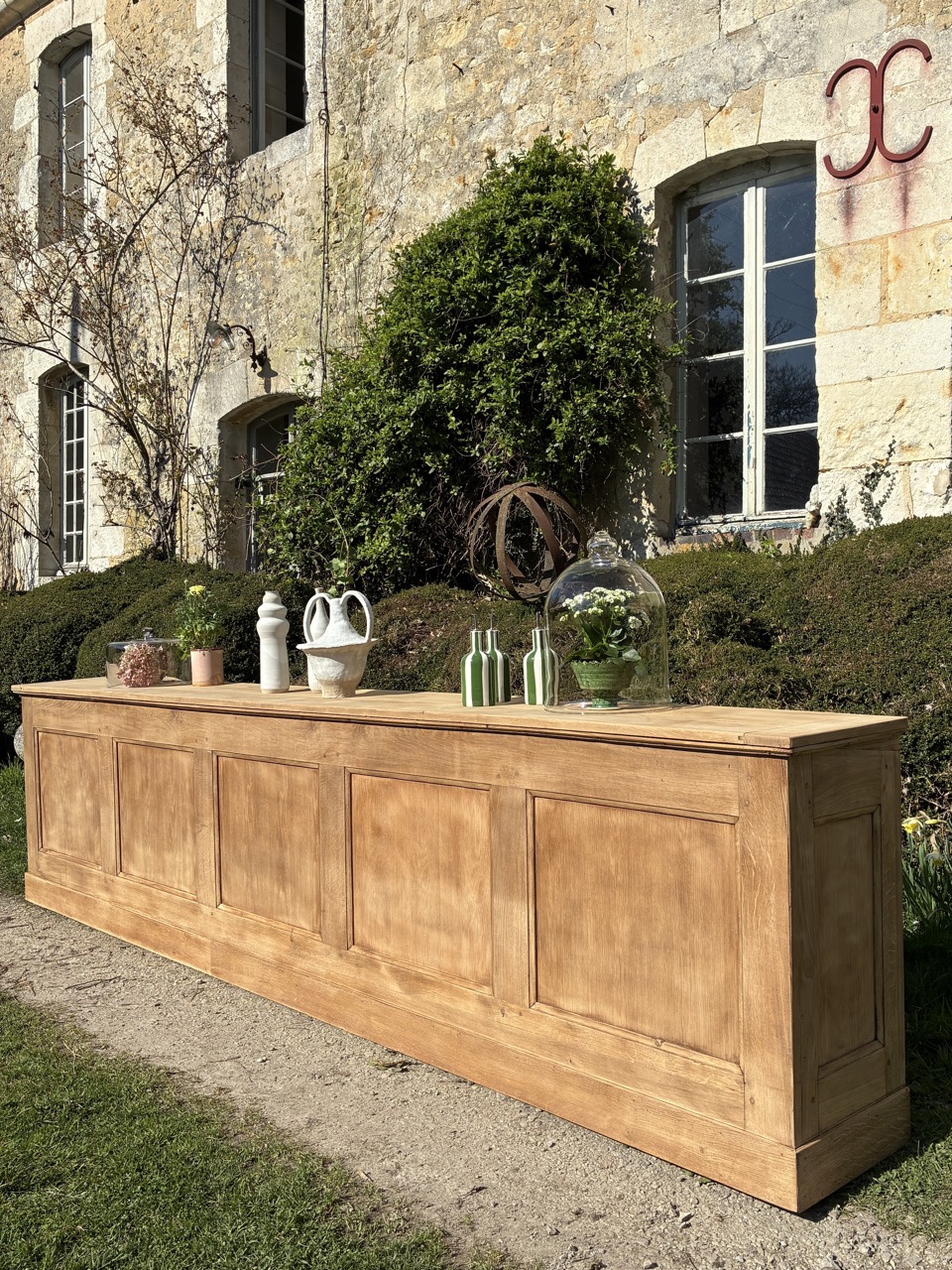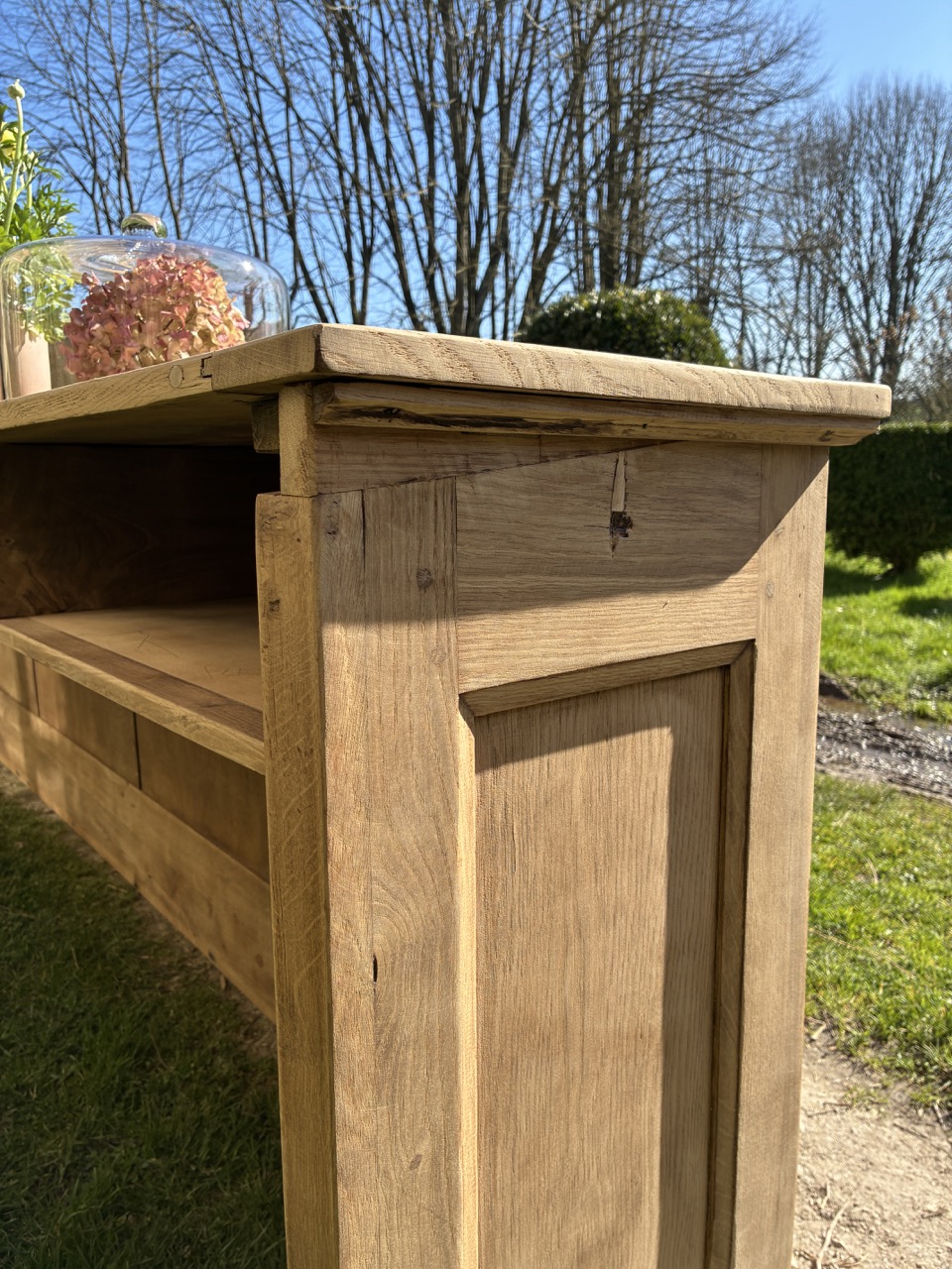 Pour débuter ce mois de mars, nous vous proposons cet ancien écritoire en chêne massif, transformé en grande console. Un format hors du commun, qui peut être utilisé en séparation de pièces ou pour habiller un mur. On aime sa couleur et son histoire. Cette console possède 5 espaces de rangements sous le plateau.