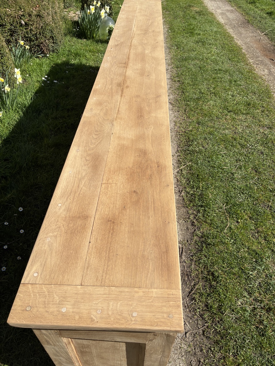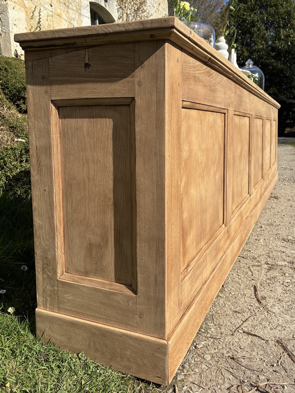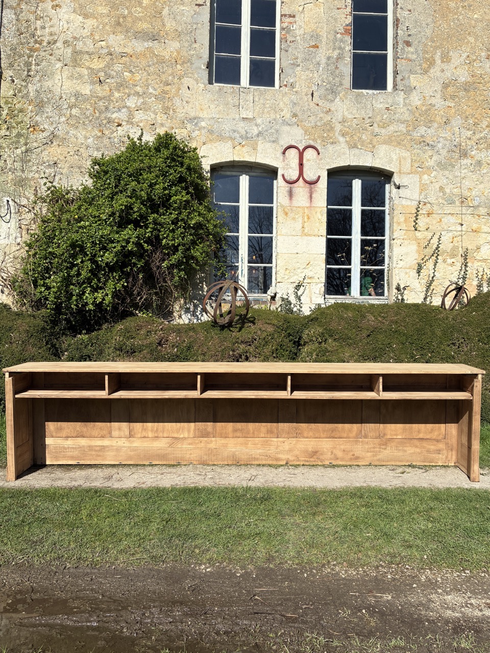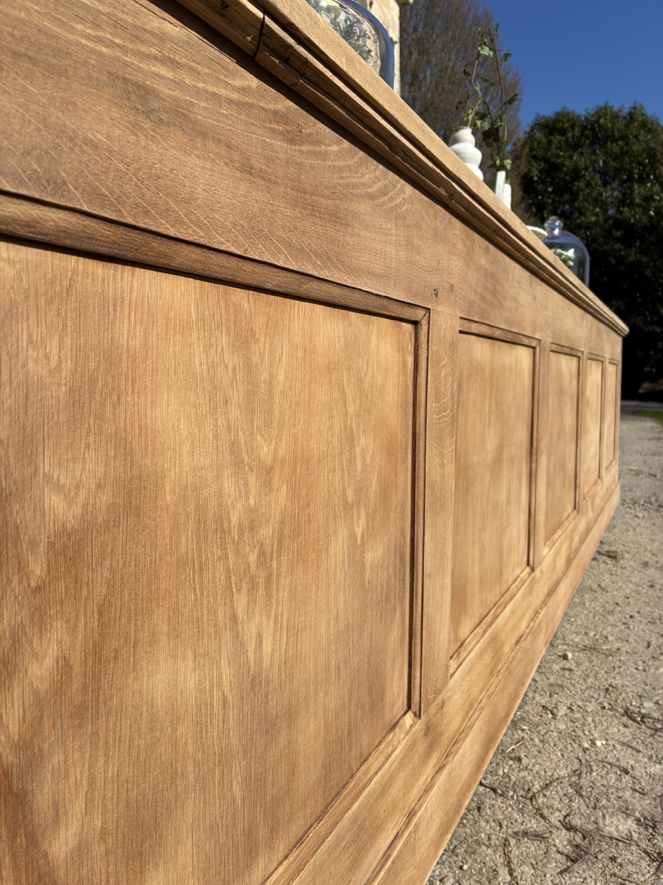 Pour débuter ce mois de mars, nous vous proposons cet ancien écritoire en chêne massif, transformé en grande console. Un format hors du commun, qui peut être utilisé en séparation de pièces ou pour habiller un mur. On aime sa couleur et son histoire. Cette console possède 5 espaces de rangements sous le plateau.