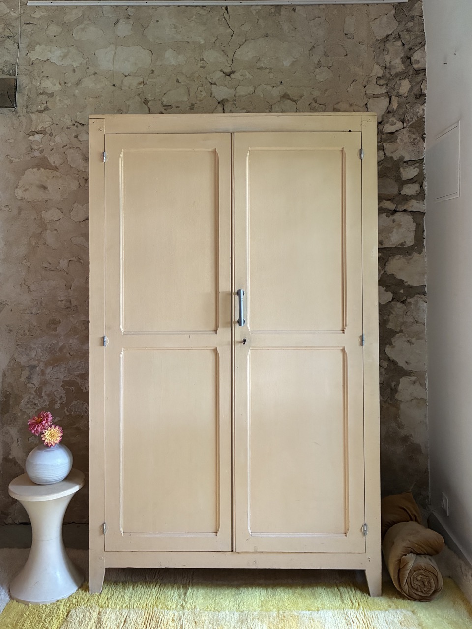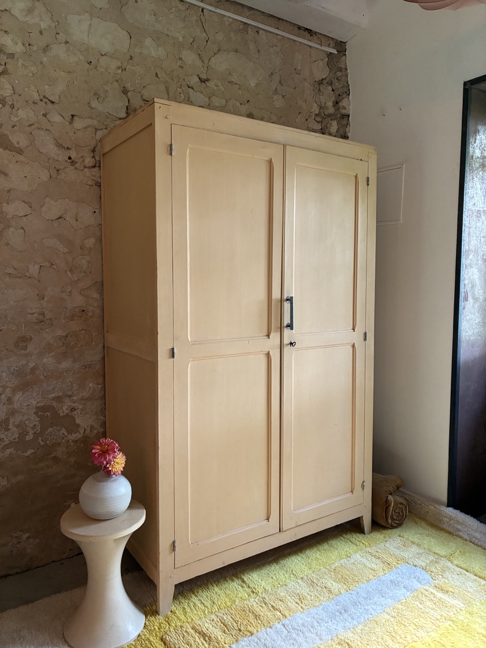 Ajoutez une touche de couleur vintage à votre intérieur avec cette belle et grande armoire jaune d’or !