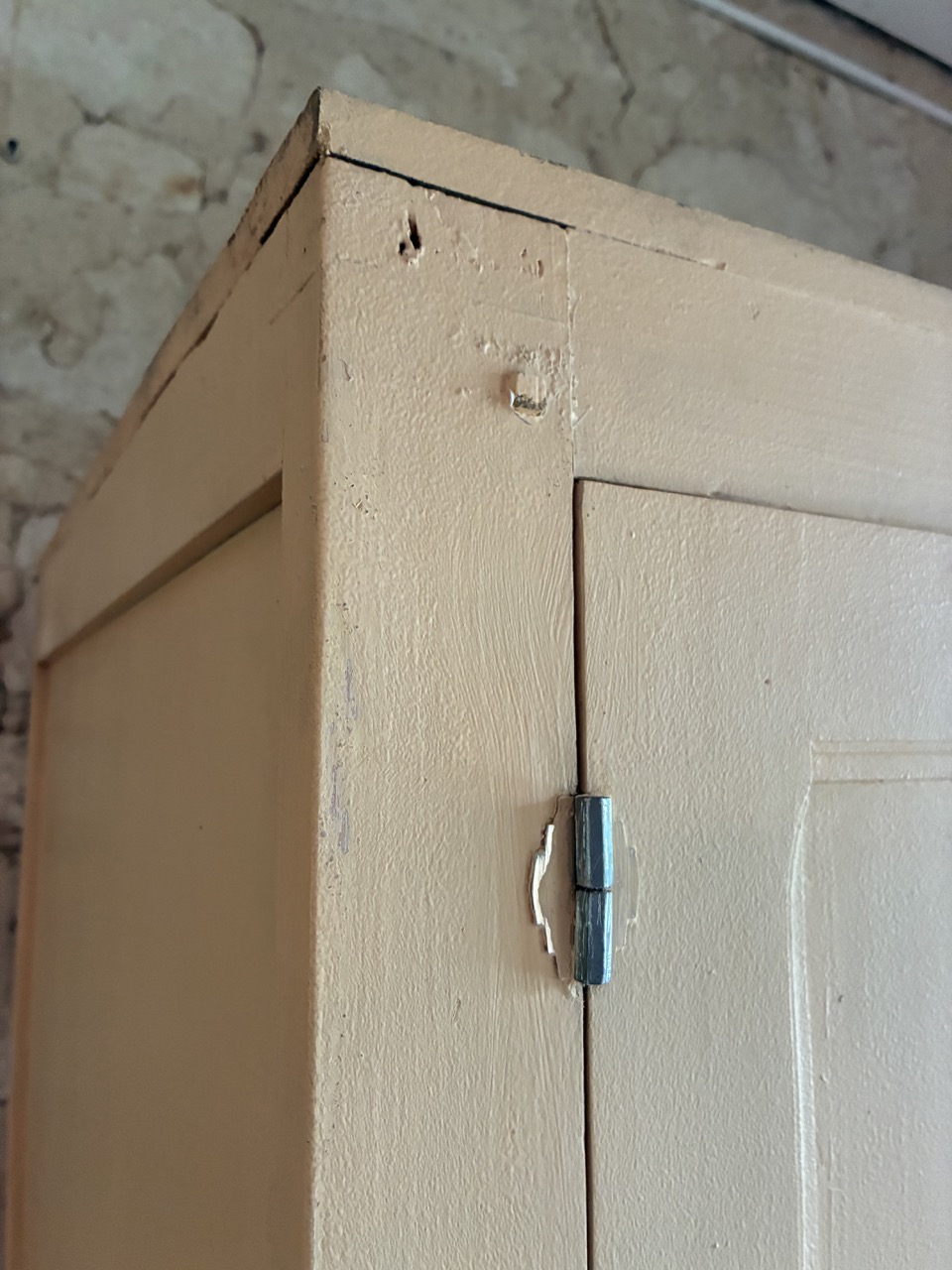 Ajoutez une touche de couleur vintage à votre intérieur avec cette belle et grande armoire jaune d’or ! Ses atouts qui nous font succomber : son format peu commun, son look sobre, sa patine d’origine et sa penderie.