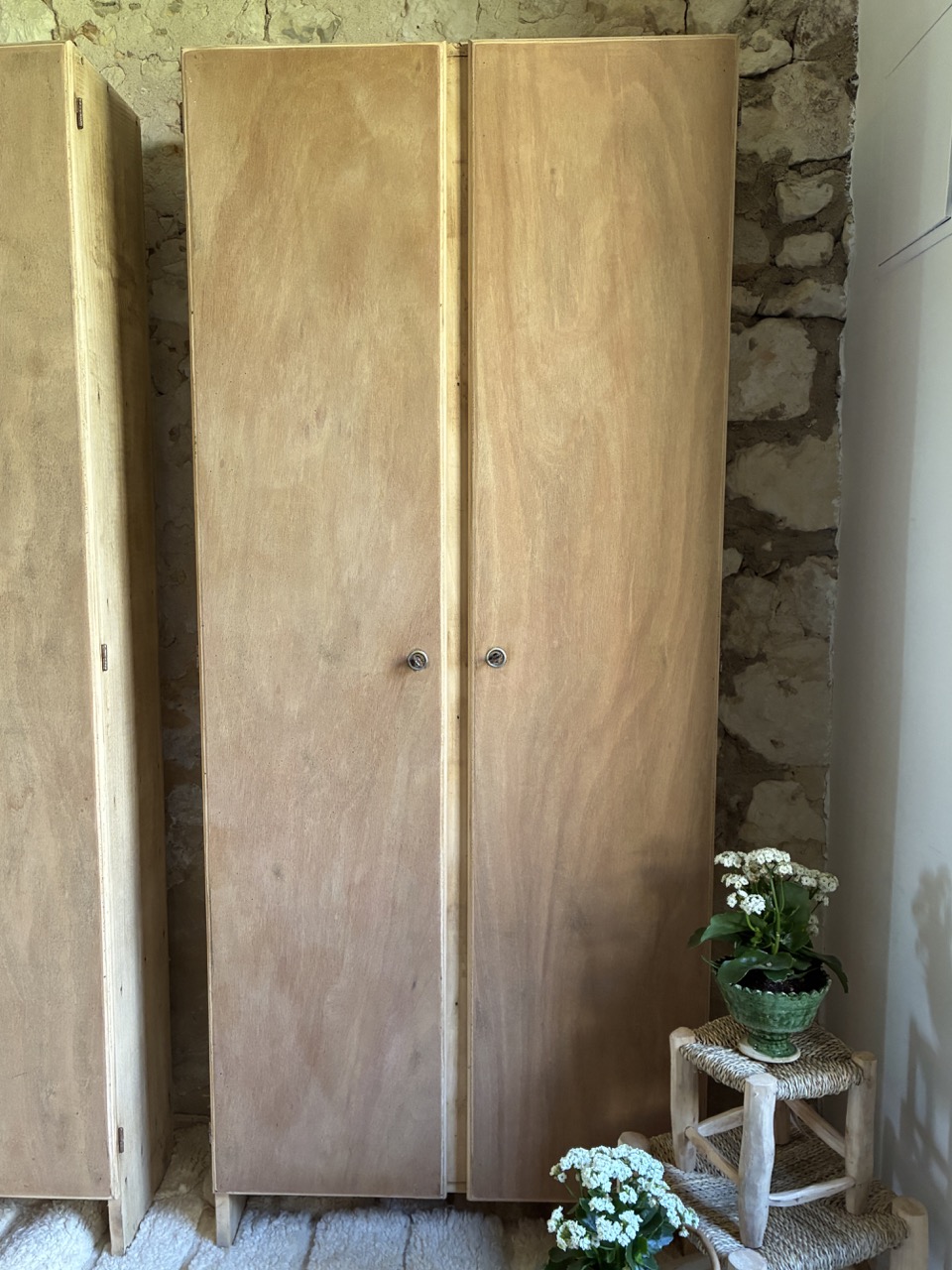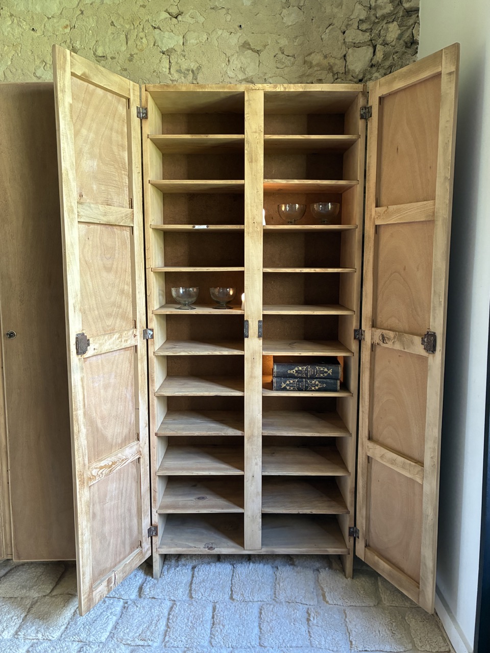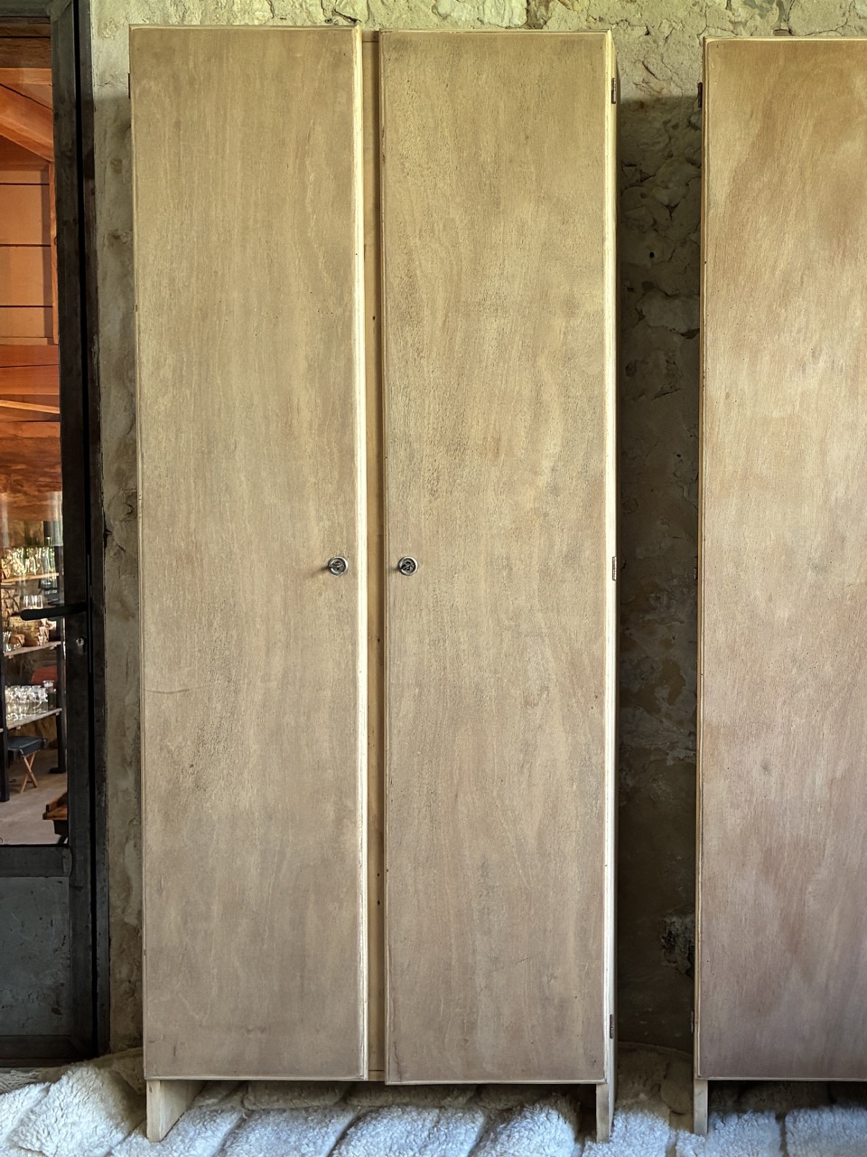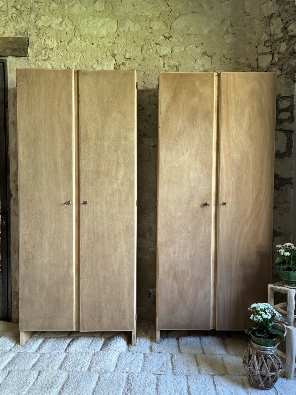 Elles font la paire ! Voici deux armoirettes en bois, comportant chacune 20 étagères de rangement réparties derrière deux portes.