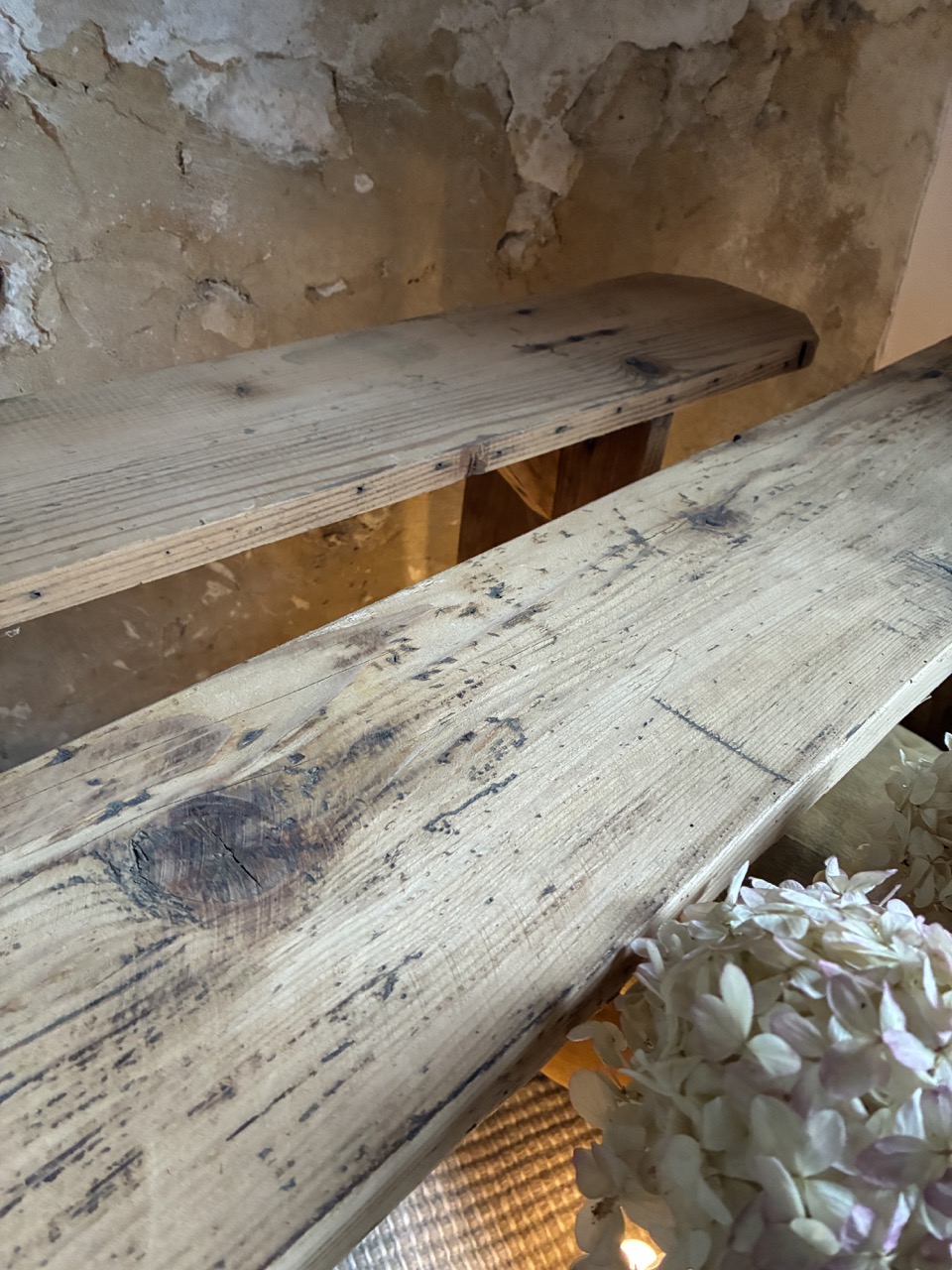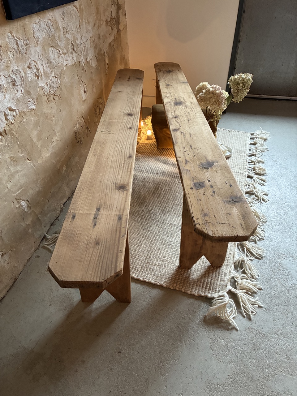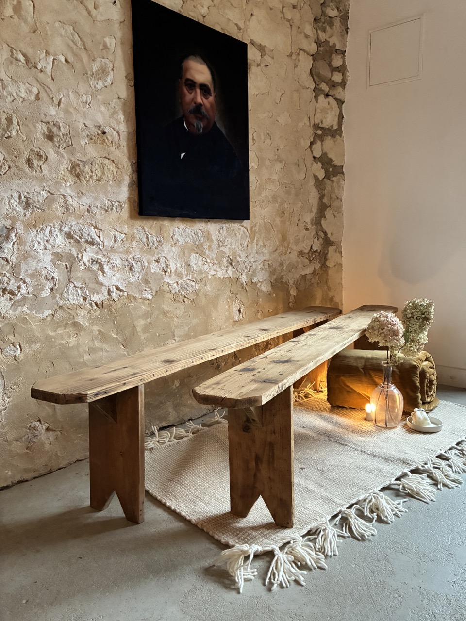 Voici une deuxième paire de bancs, qui pourra aussi bien faire office d’assises autour d’une table de salle à manger, que de bouts de lit pour y déposer quelques objets de décoration.