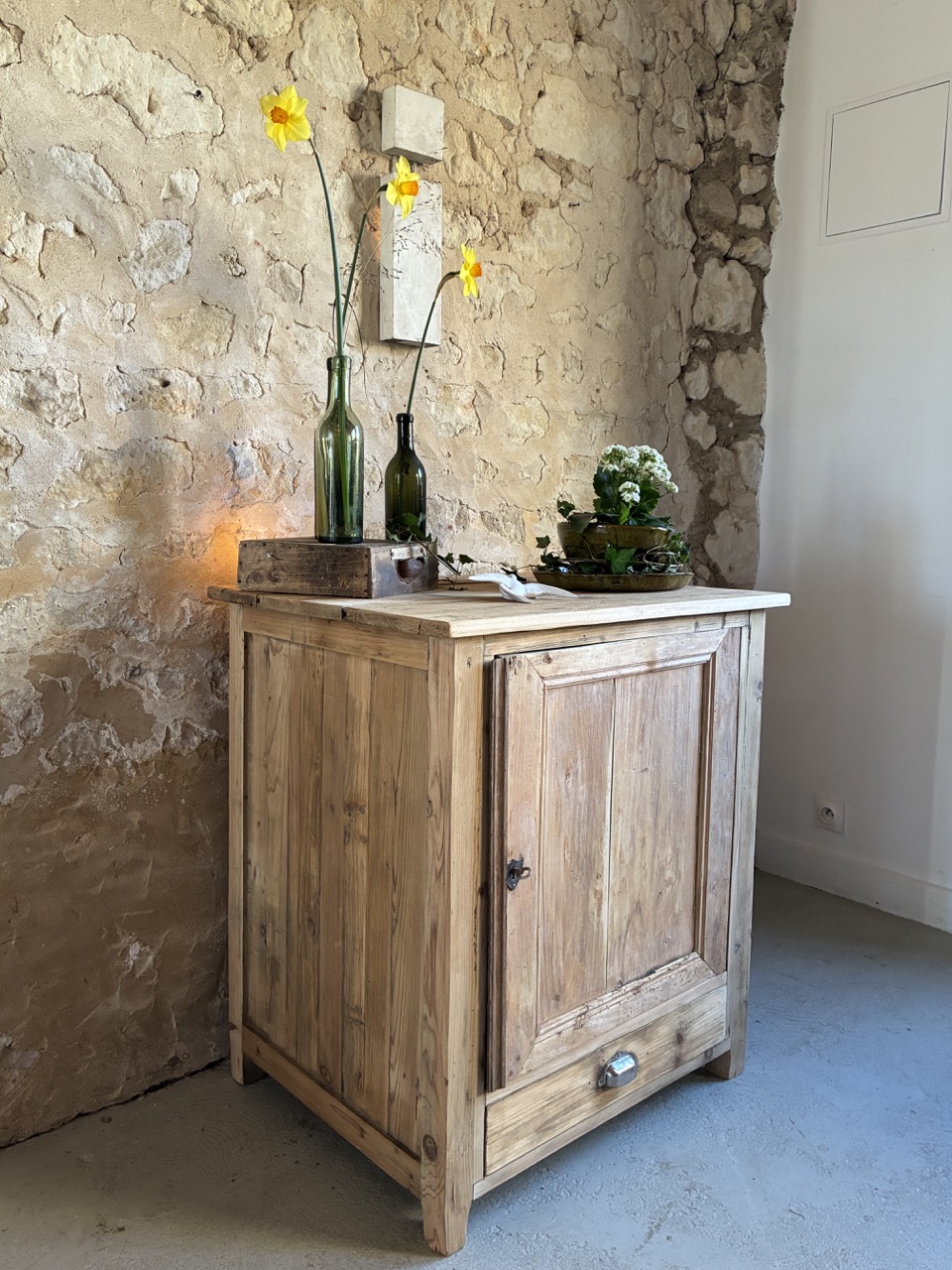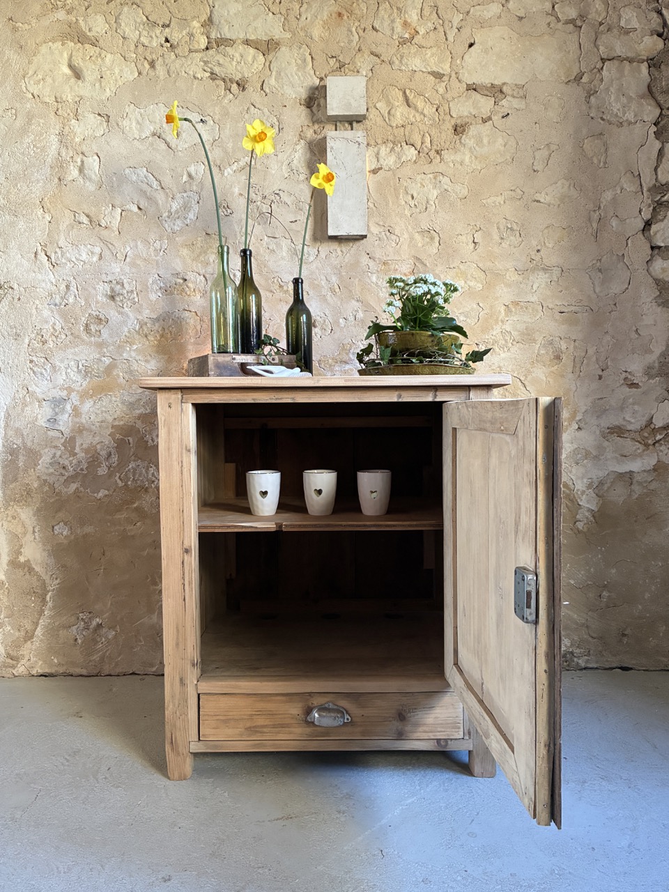 Craquez pour ce petit buffet une porte, un tiroir au look irrésistible, idéal pour apporter une touche brute à votre entrée ou votre salon.