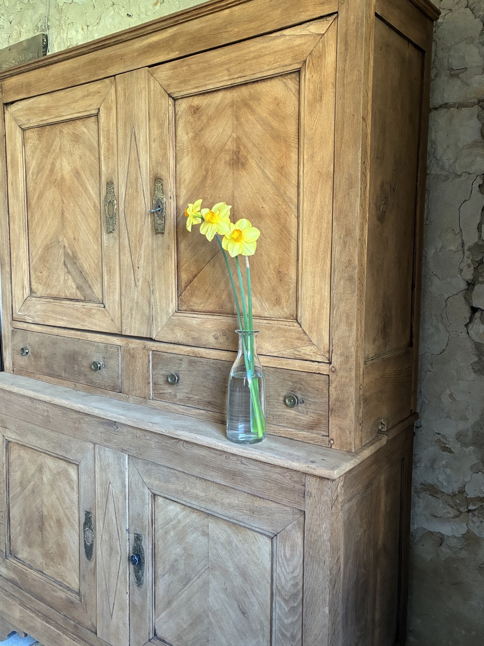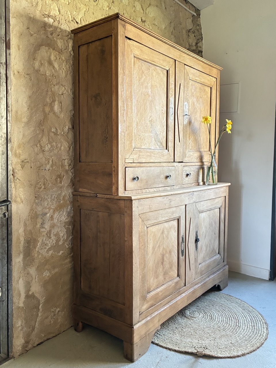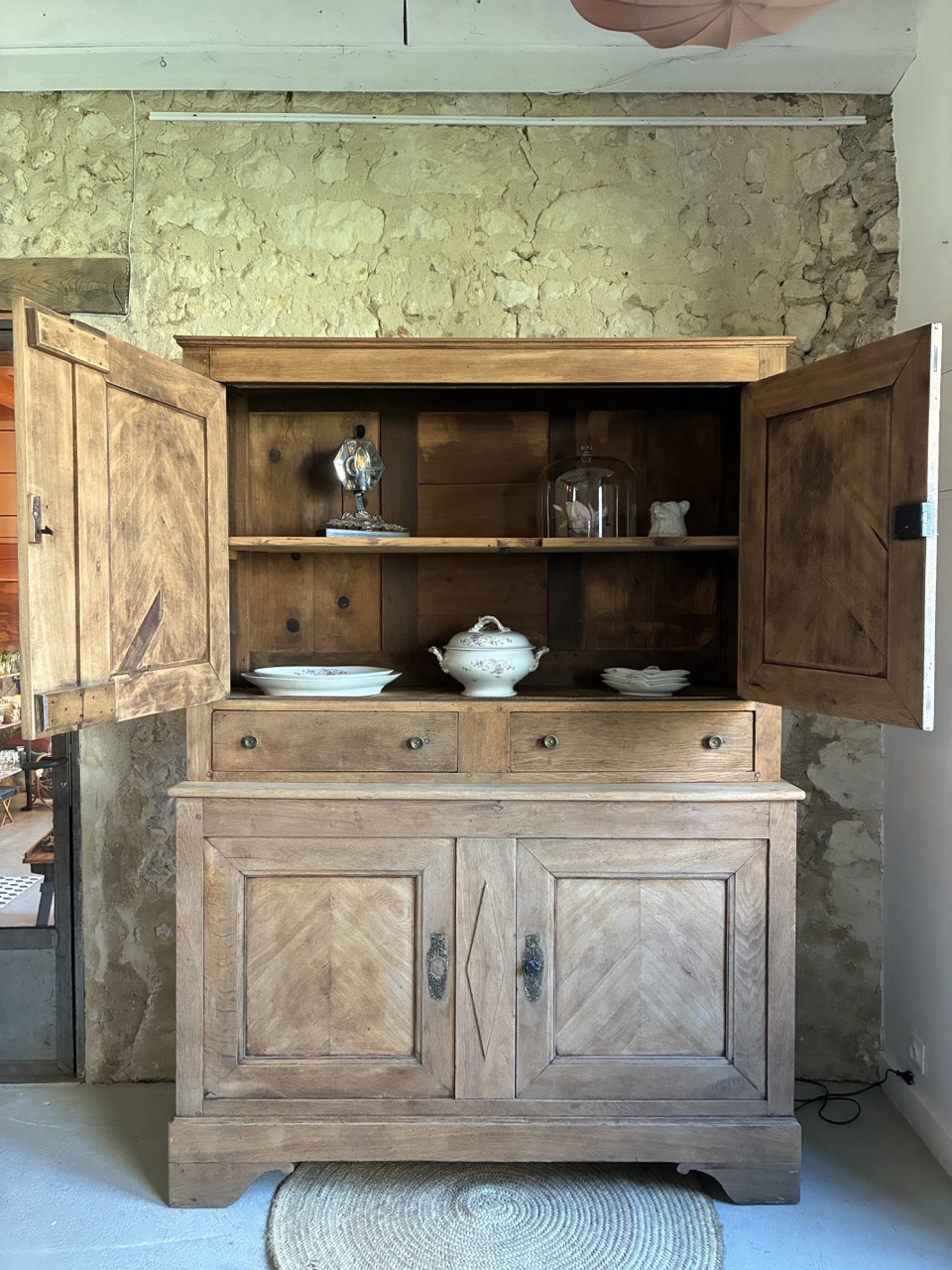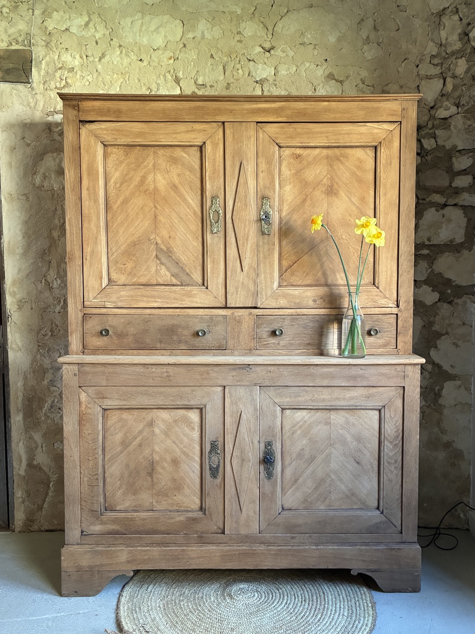 Ses ornements et le travail de son bois lui confèrent beaucoup de charme. Ce buffet deux corps de caractère est un véritable coup de cœur pour nous.