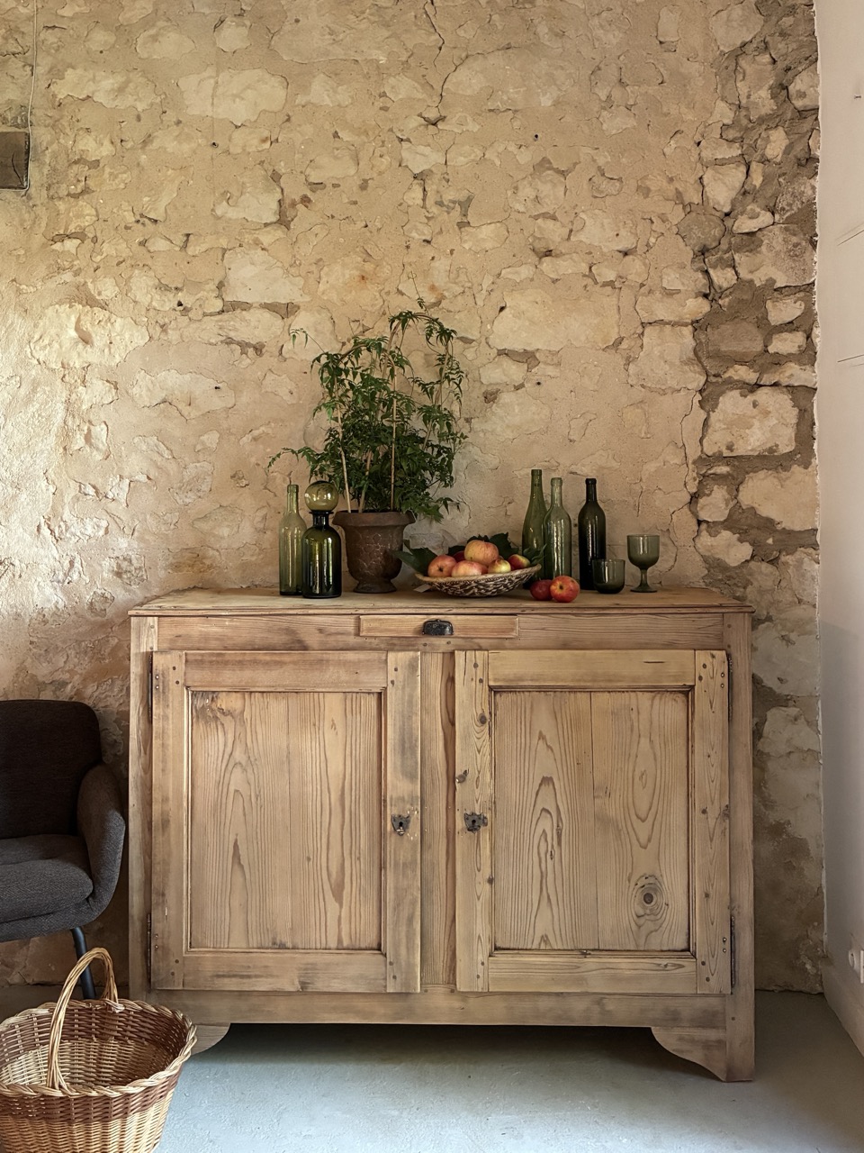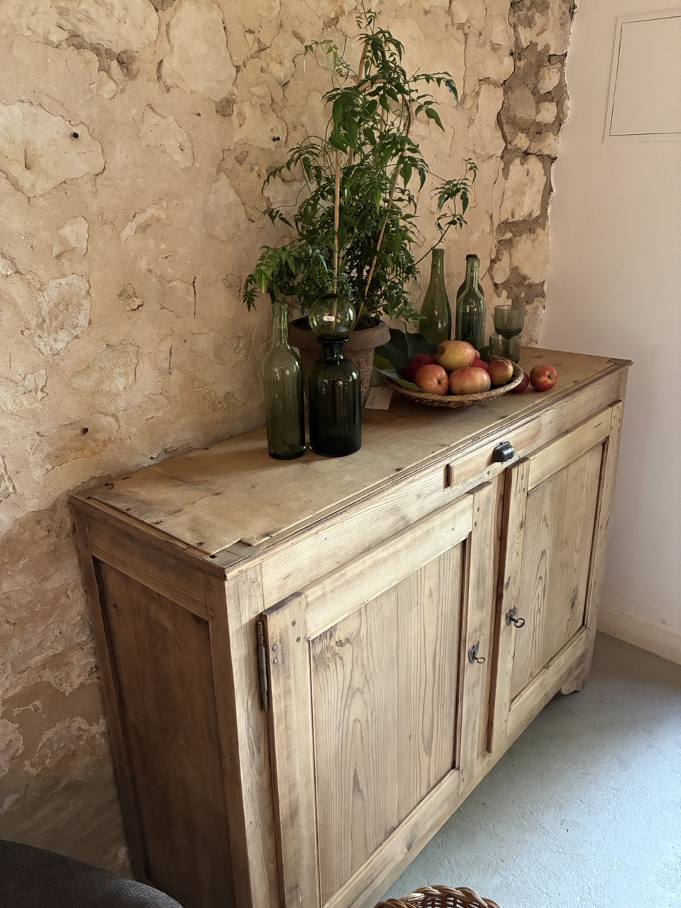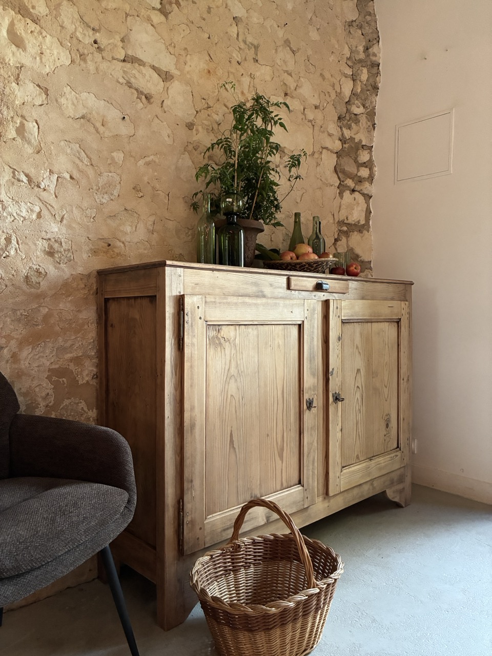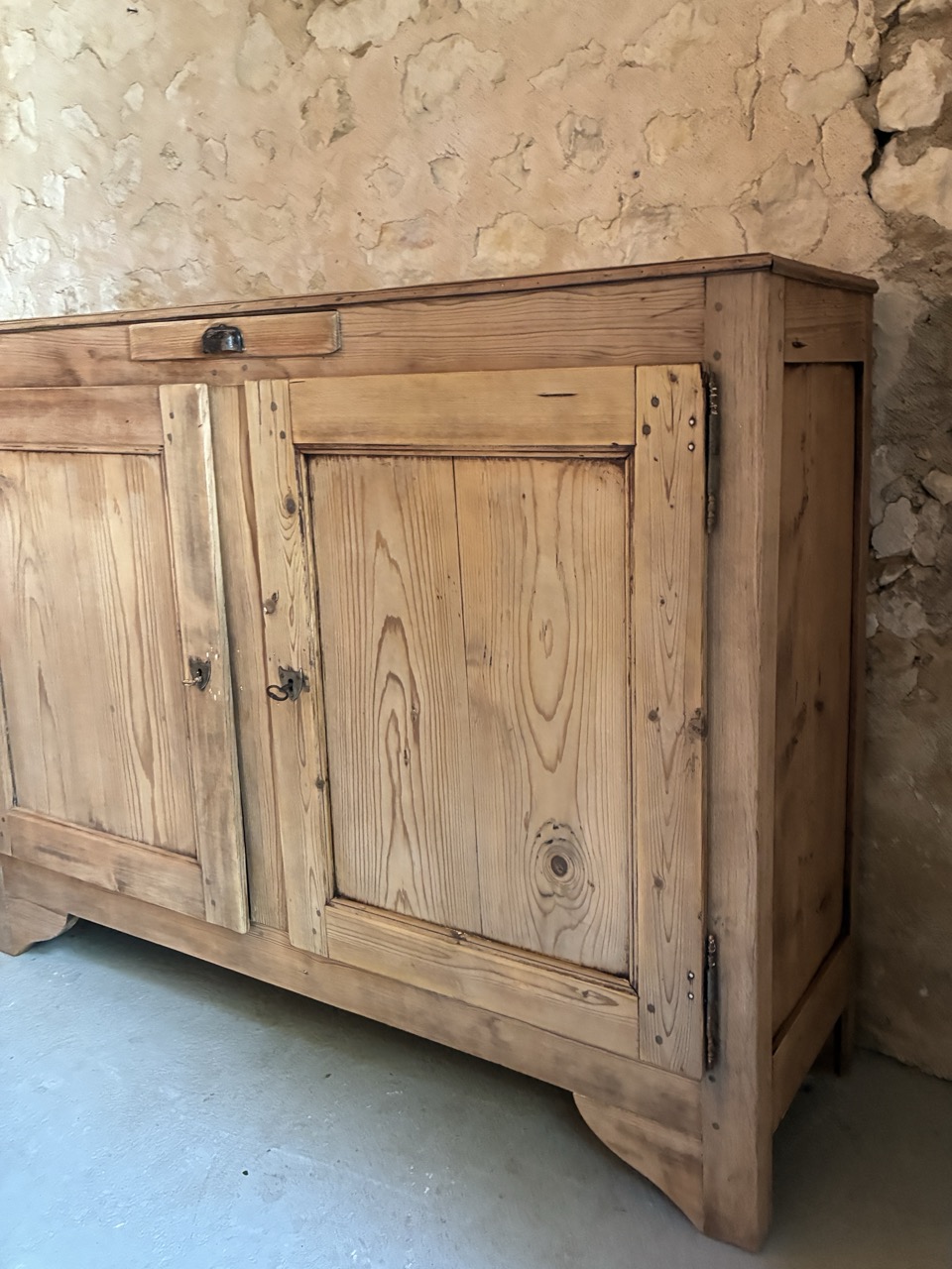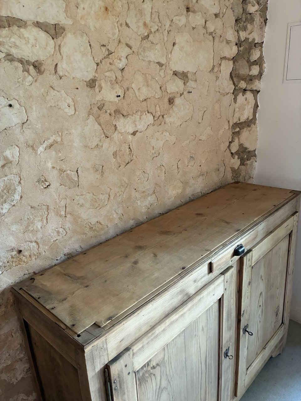 L’équipe a pris soin de retravailler l’intégralité de ce magnifique meuble en sapin, à la fois spacieux et peu profond.