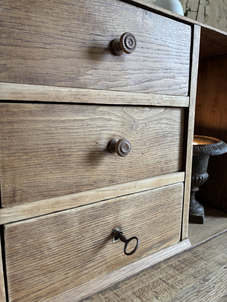 | Infos | Avant d’effectuer votre commande, veuillez noter que nous proposons des meubles anciens qui peuvent laisser apparaître quelques traces de vie. Poncés, révisés, restaurés, pensés, créés, traités : chaque meuble a soigneusement été rénové par nos soins. |
