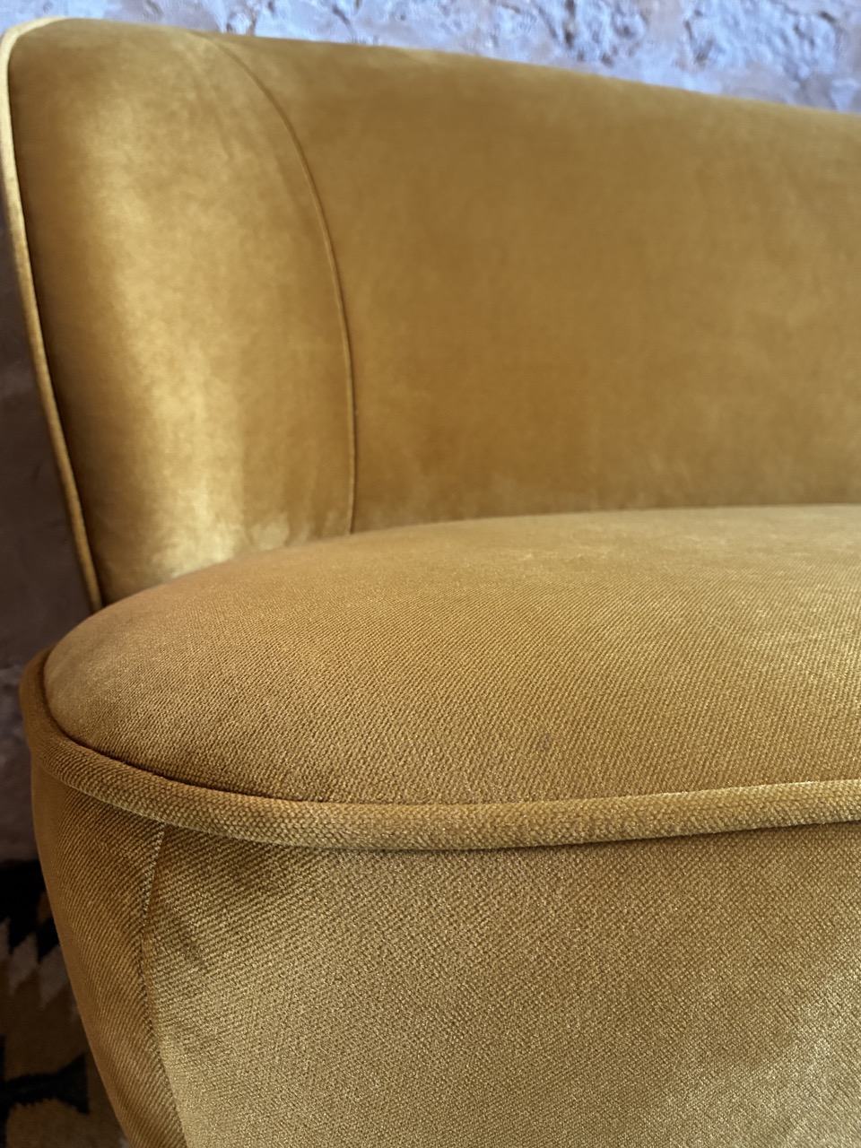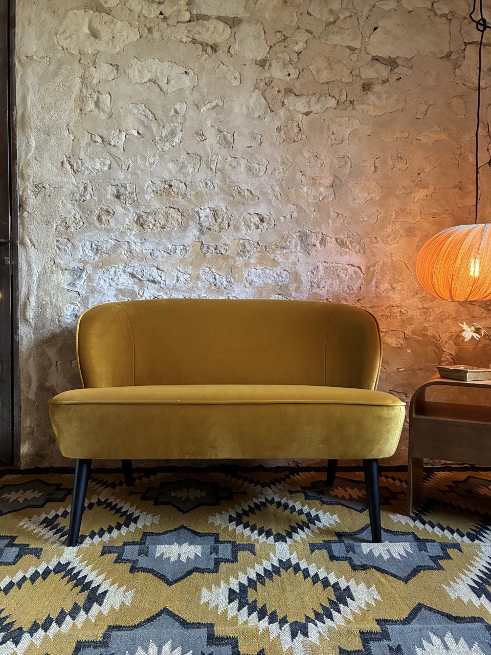 Alerte nouveauté dans les assises ! Ce joli canapé en velours ras ocre est parfait pour illuminer votre intérieur. Son assise apporte un soutien idéal, et ses coins arrondis lui apportent une élégance naturelle.