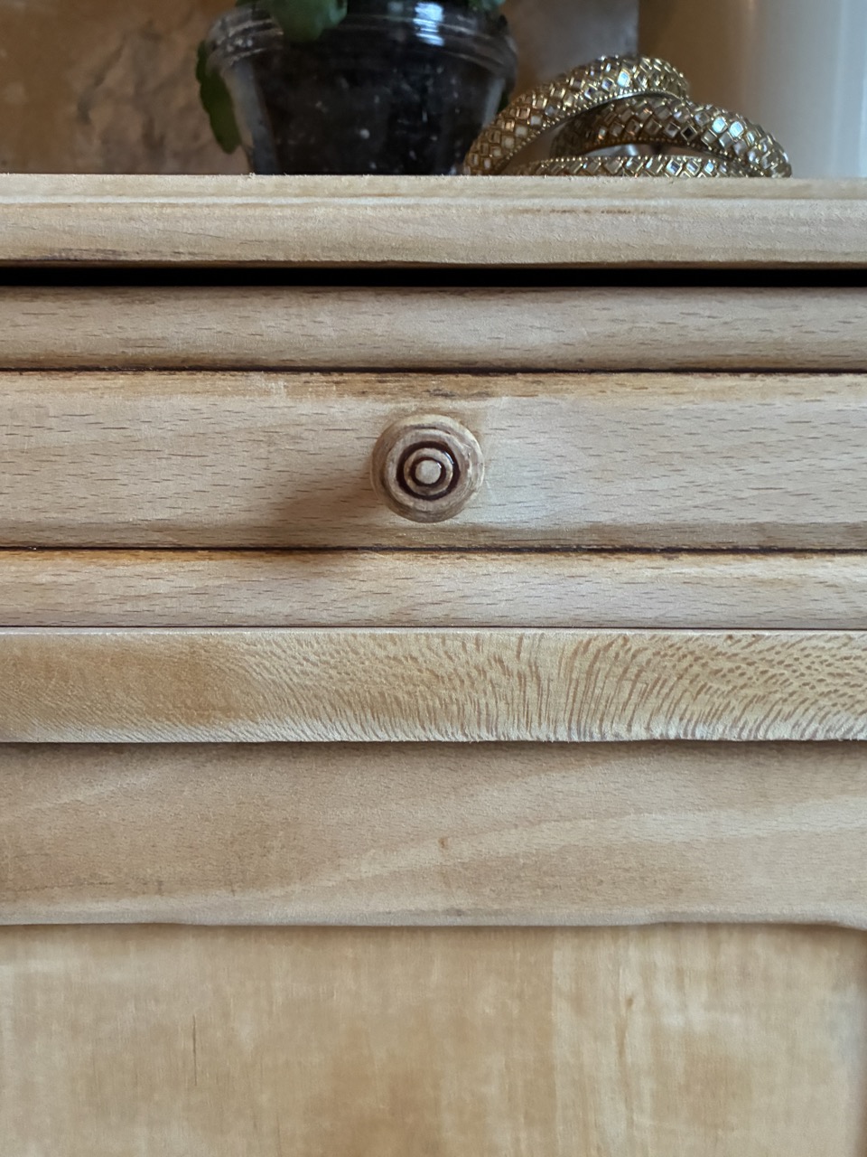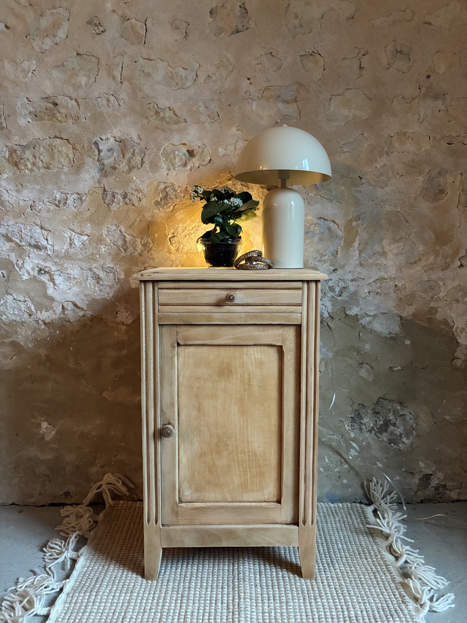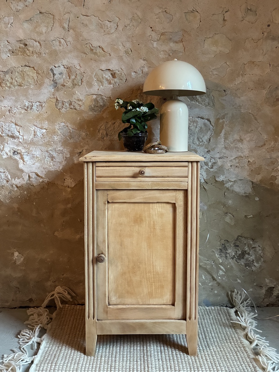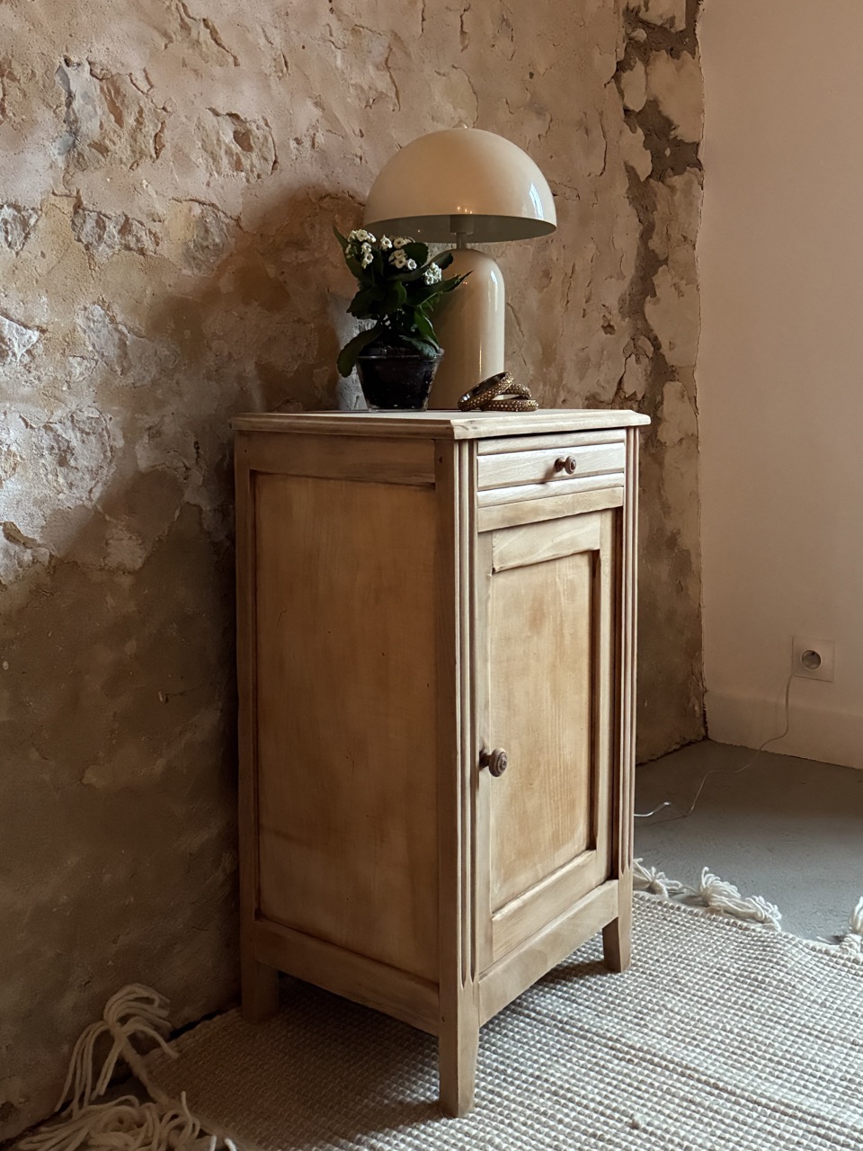 Le deuxième de la journée ! Joli chevet, cette fois-ci comprenant un tiroir et une porte. Il est brut en bois clair. Idéal pour y cacher vos secrets et poser une lampe de chevet.