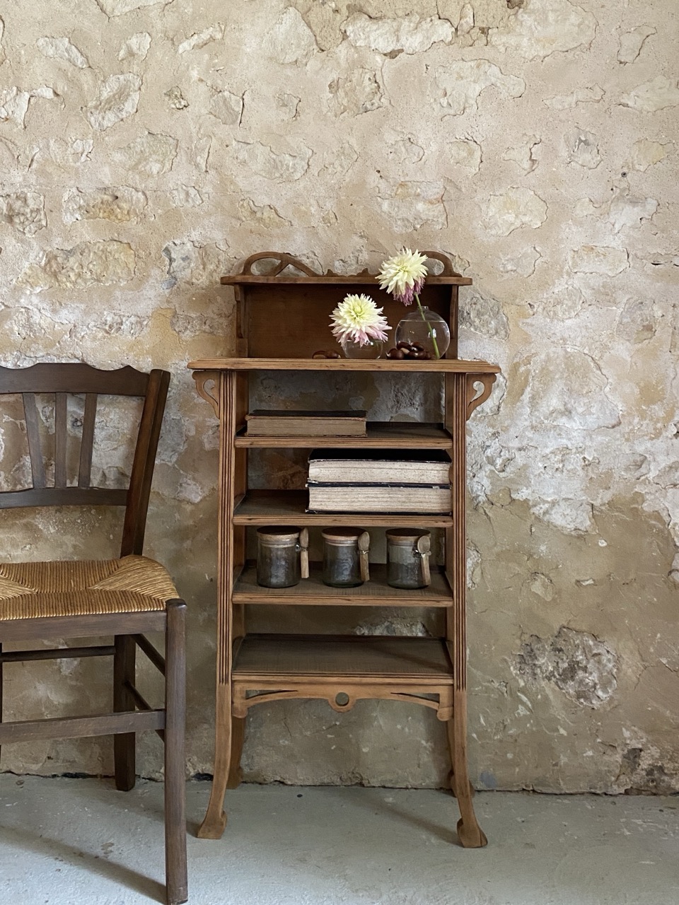 Merveilleuse trouvaille de l’équipe qui a travaillé sur cette étagère des années 20/30 ! On l’imagine bien dans une entrée où peut être même en chevet.