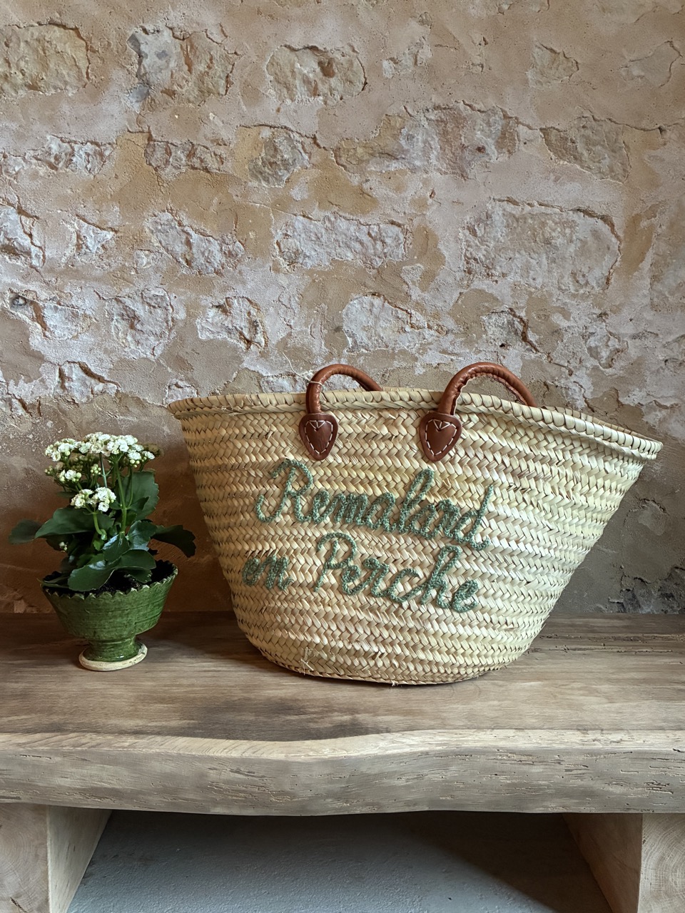Les beaux jours arrivent, et quoi de mieux que de flâner au marché ou sur les bords de mer ? Nous avons ce qu’il vous faut pour vous accompagner en ville ou à la plage ! Ces très jolis paniers brodés vert avec les noms de nos villages percherons sont très résistants et sauront vous accompagner partout. Ils possèdent des anses en cuir suffisamment grandes pour être portées à votre épaule.