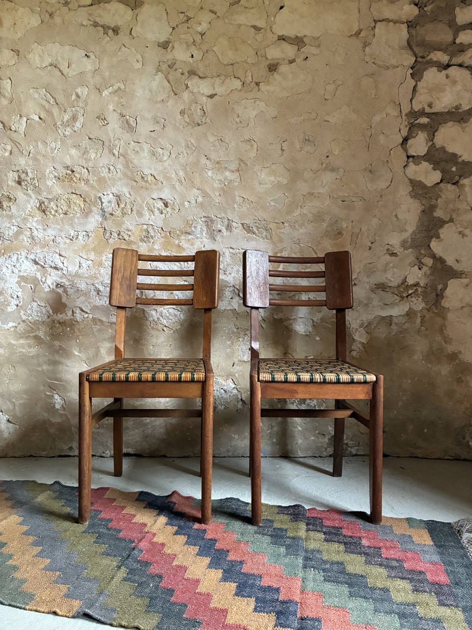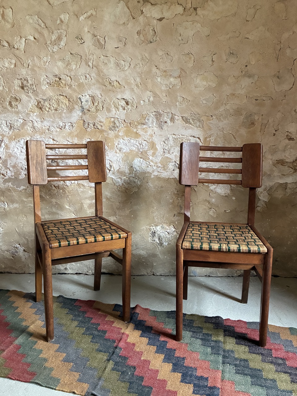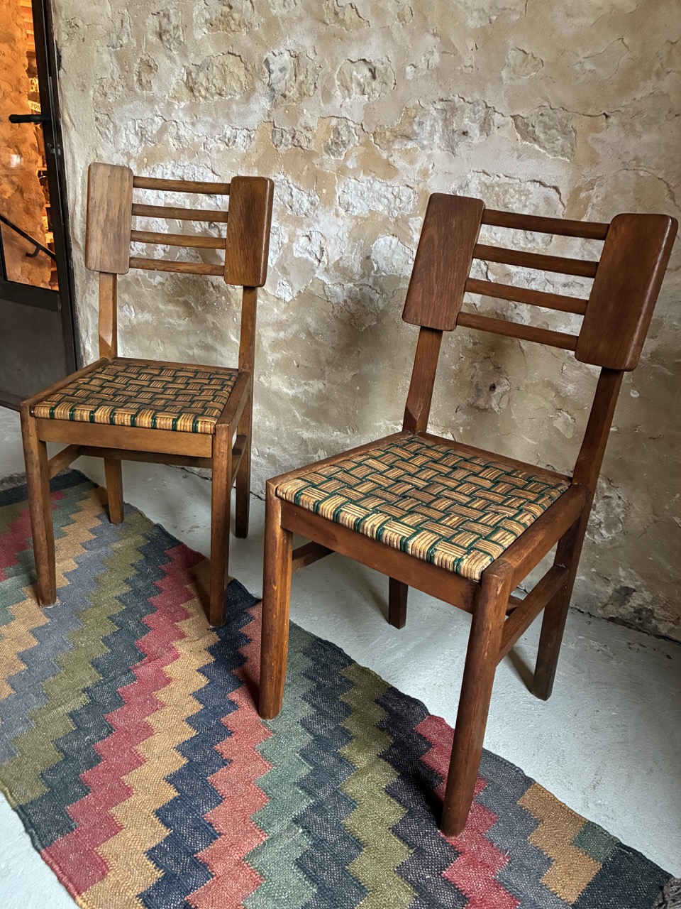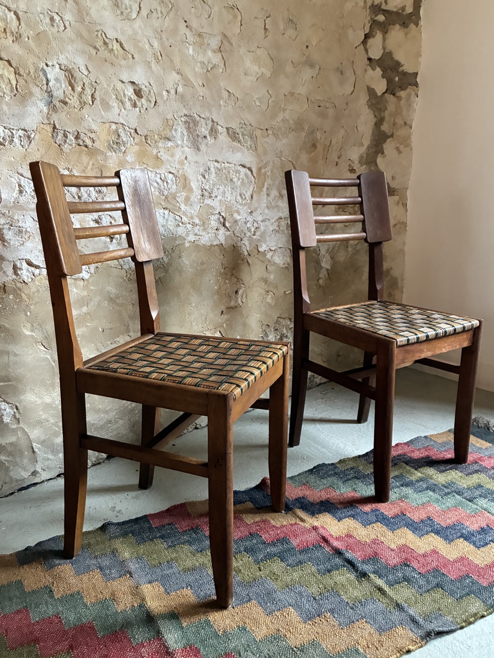 Elles sont absolument magnifiques avec leur tressage bicolore. Reproduction du design de Pierre Cruege, elles offrent deux assises design, confortables et intemporel.
