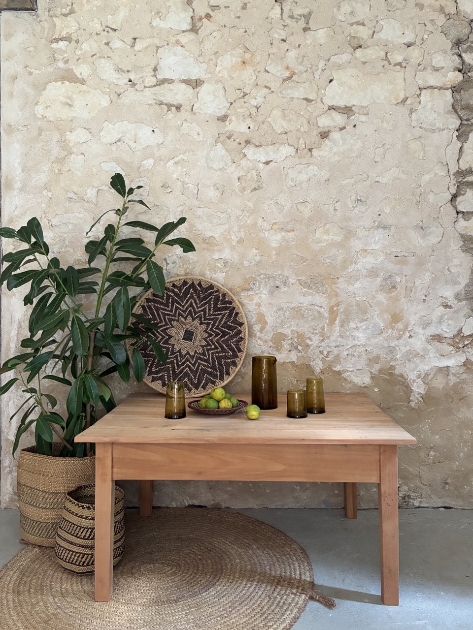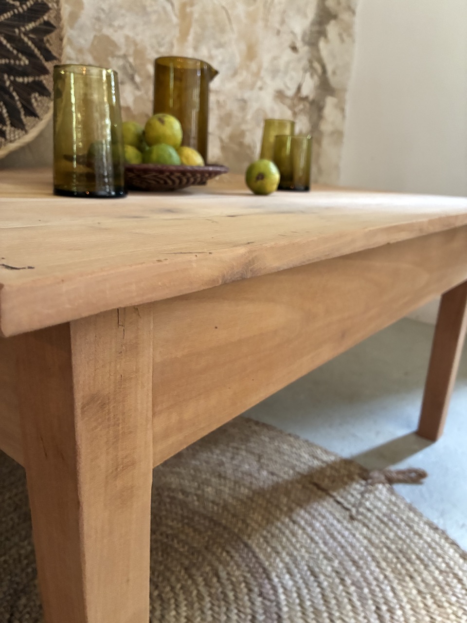 Table basse sobre et intemporelle en bois brut.