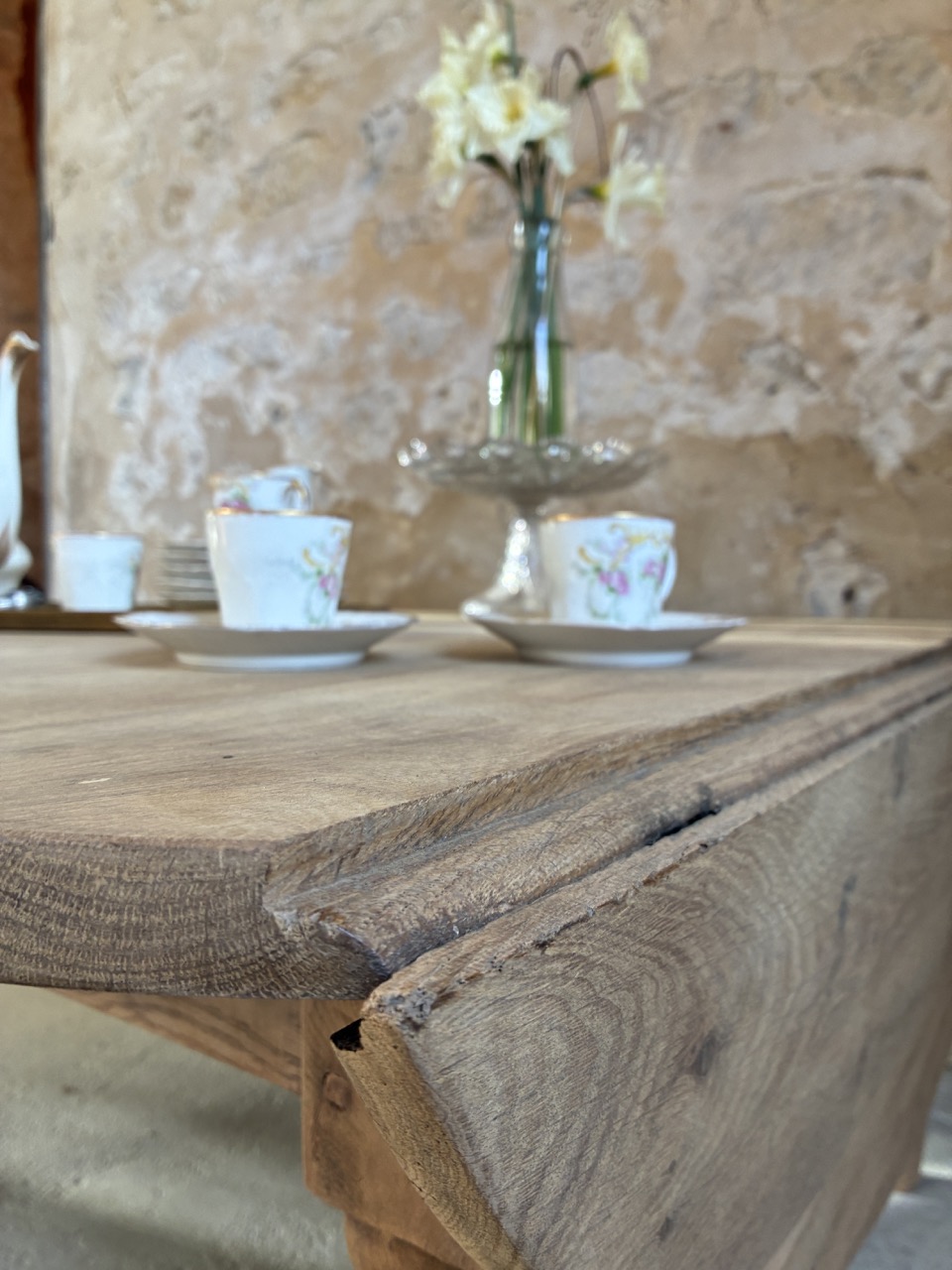 Elle possède deux rabats ultra pratiques, qui vous permettent d’agrandir la table comme vous le souhaitez. En bois brut, sa teinte naturelle vous fera craquer.