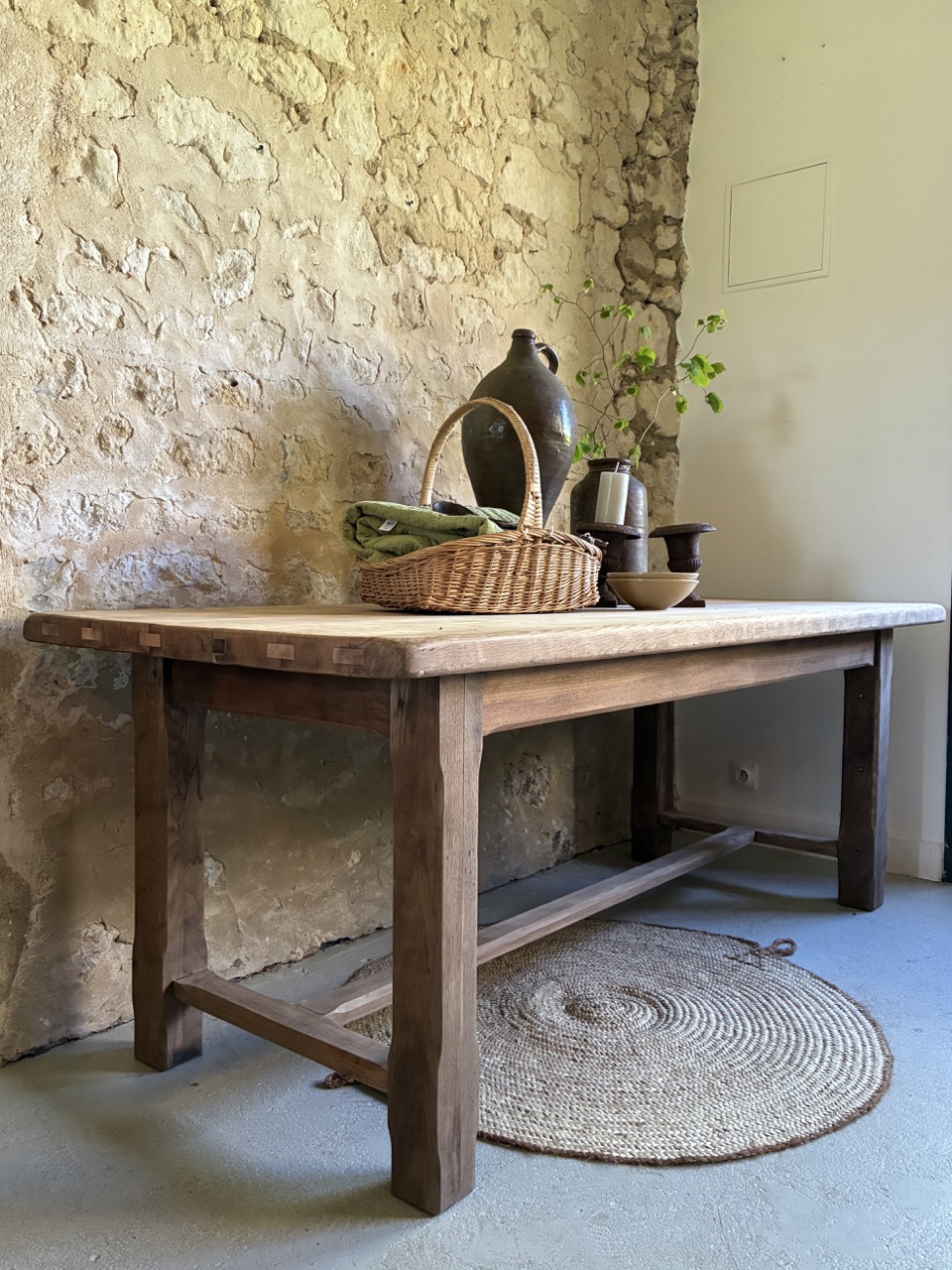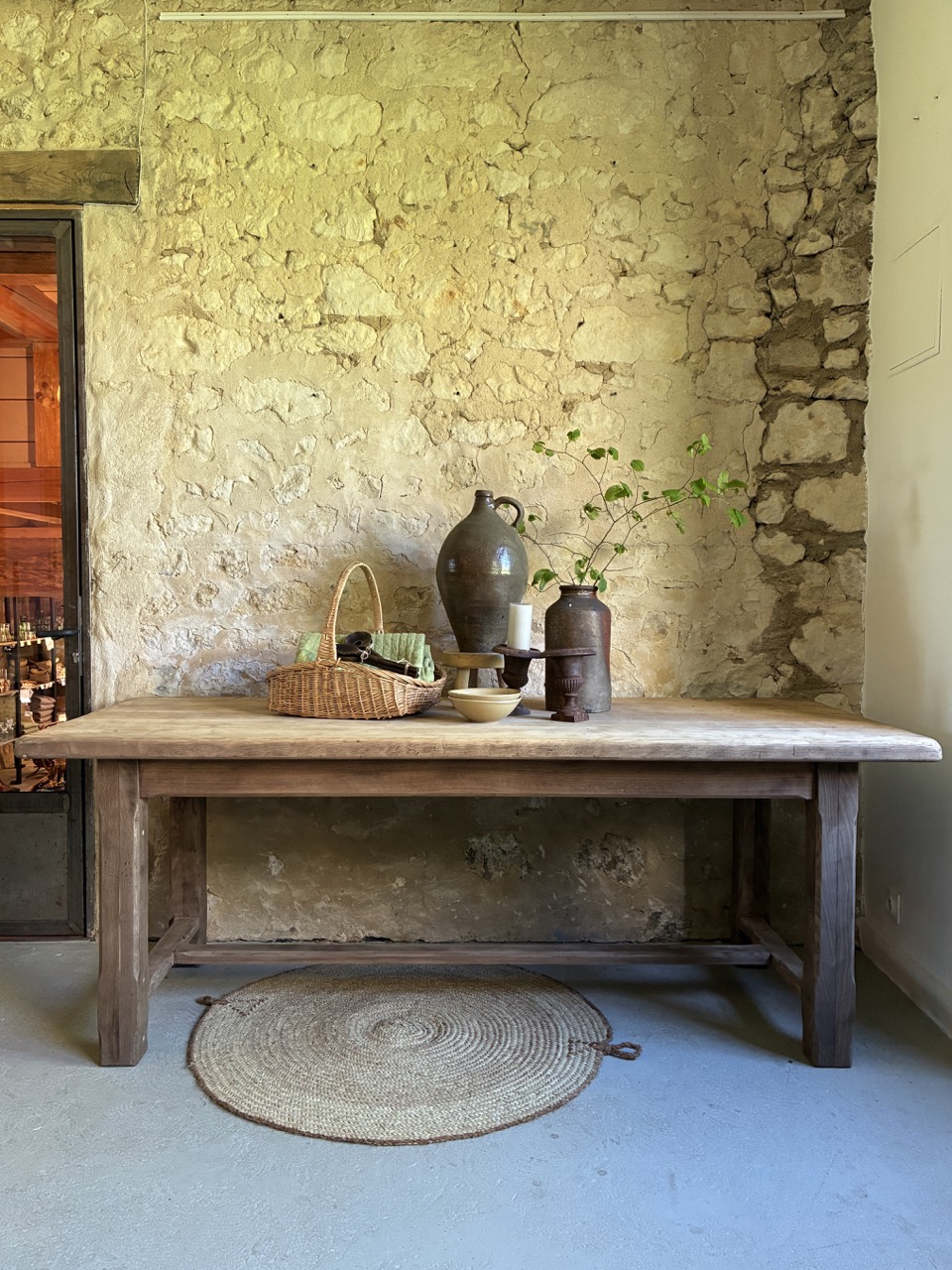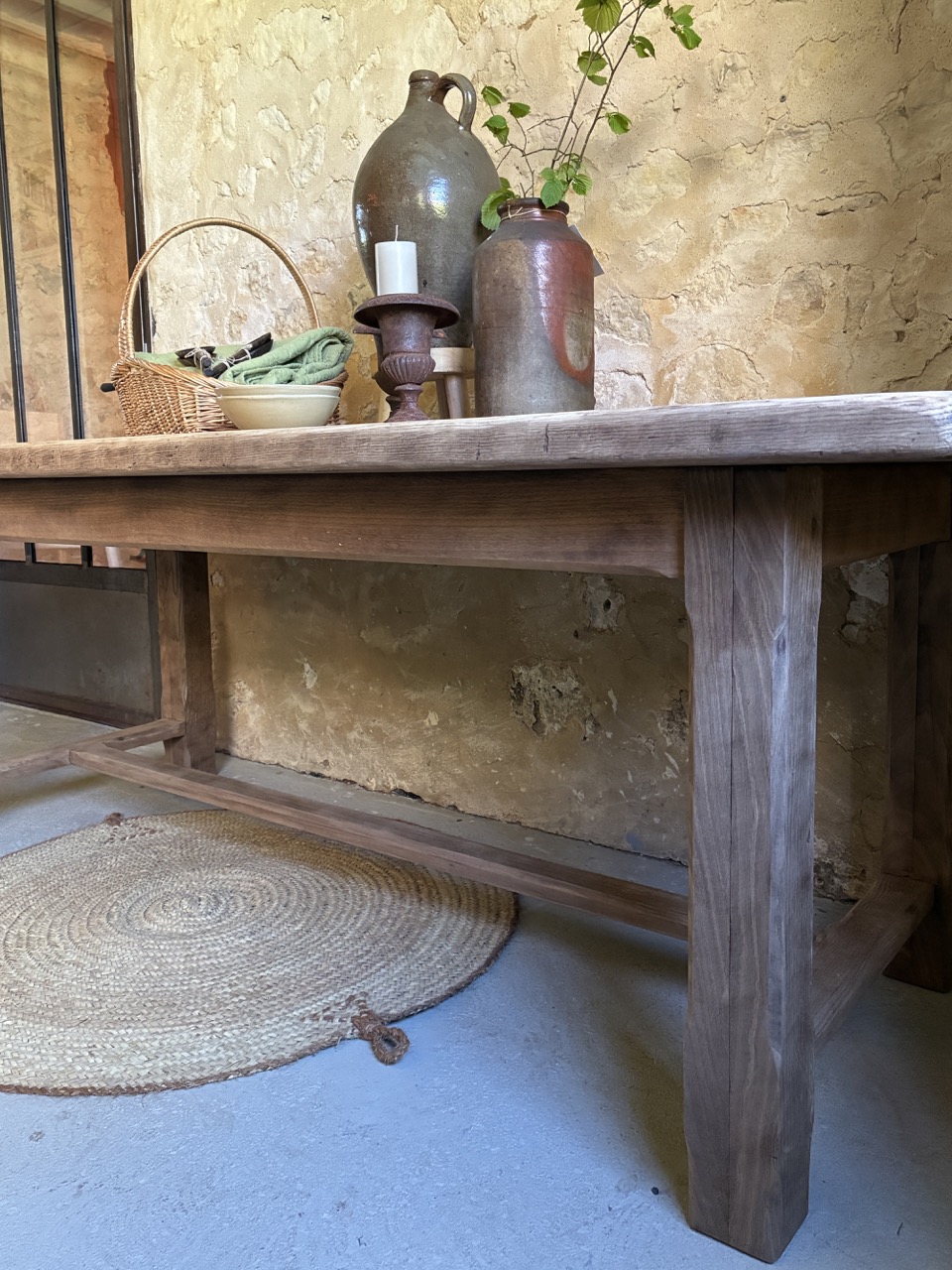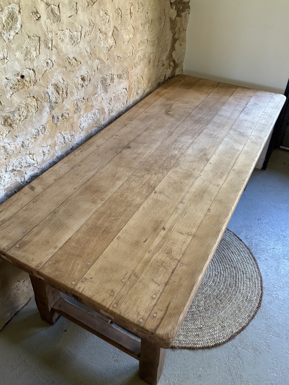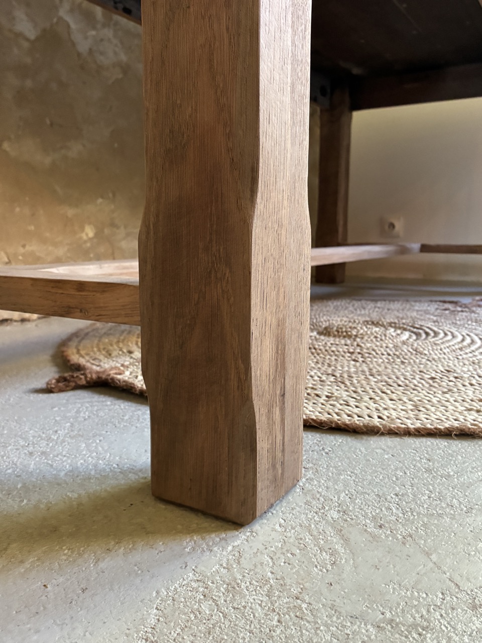 Belle table de ferme en bois massif. Ses dimensions font d’elle une alliée idéale pour les tablées en famille ou entre amis. Suffisamment large pour recevoir à la fois les plats et le dressage de la table, elle fera d’elle la pièce parfaite au centre de votre salle à manger. Elle est prête à être adoptée.