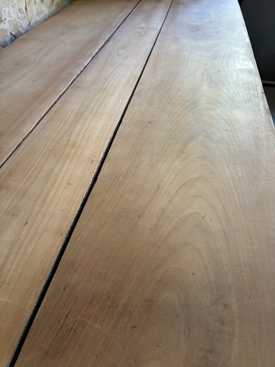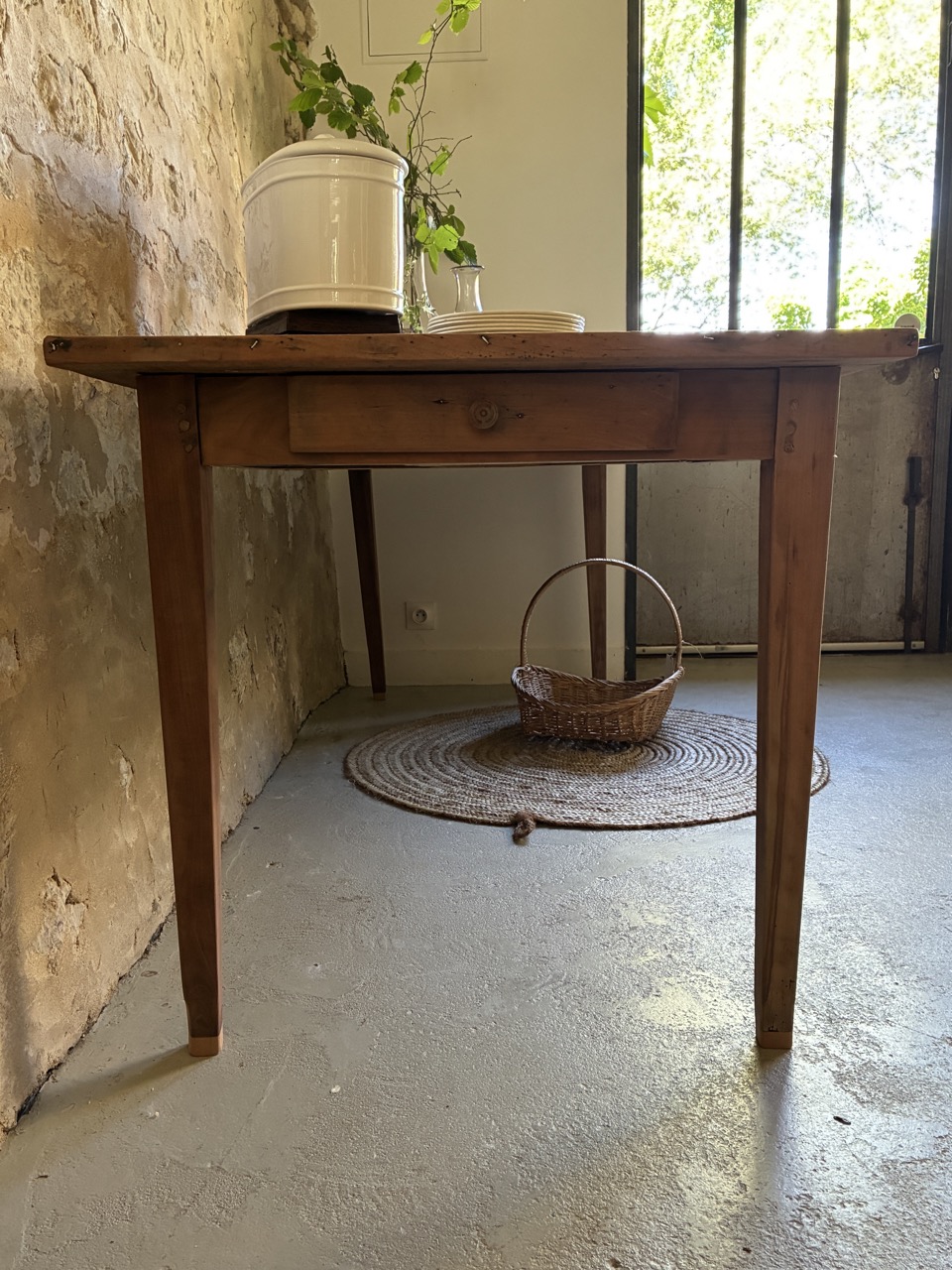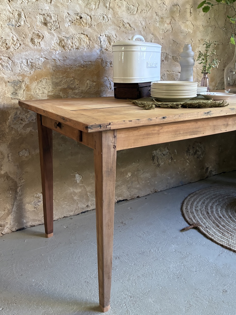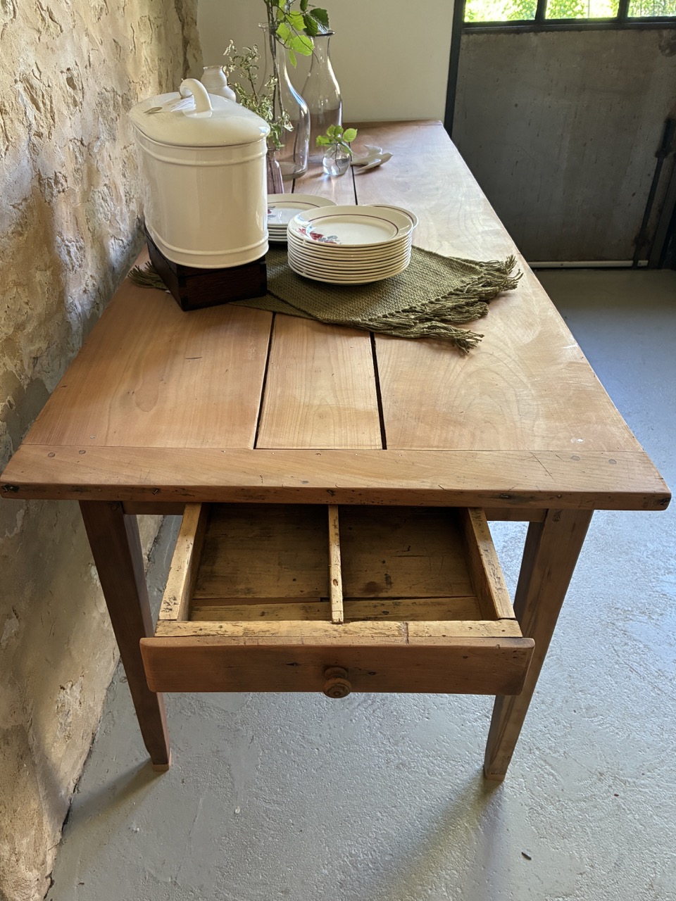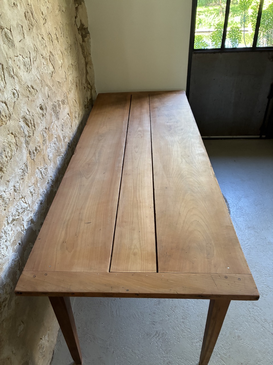 Cette grande table de salle à manger en merisier est parfaite pour vos diners entre amis ou en famille. Sobre et chic, elle possède un tiroir en bout, parfait pour y ranger quelques couverts de services ou bien vos bougies pour décorer cette grande table.