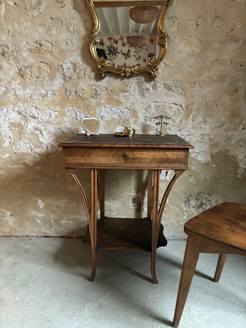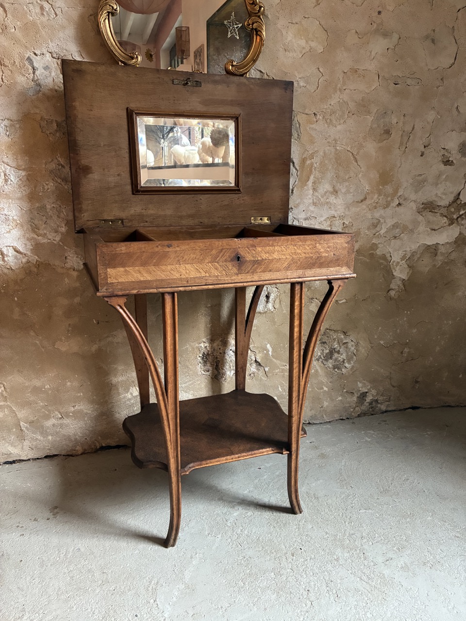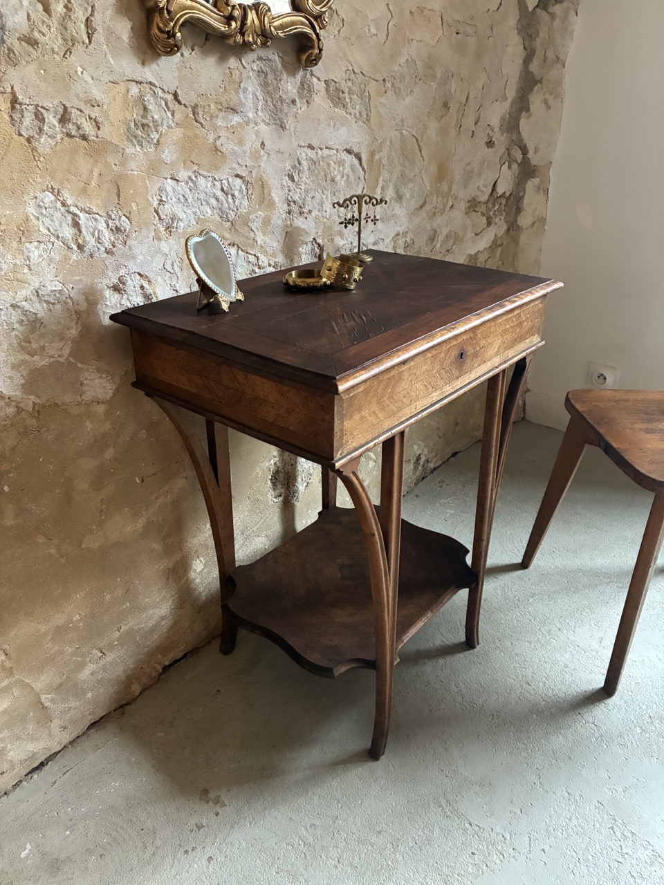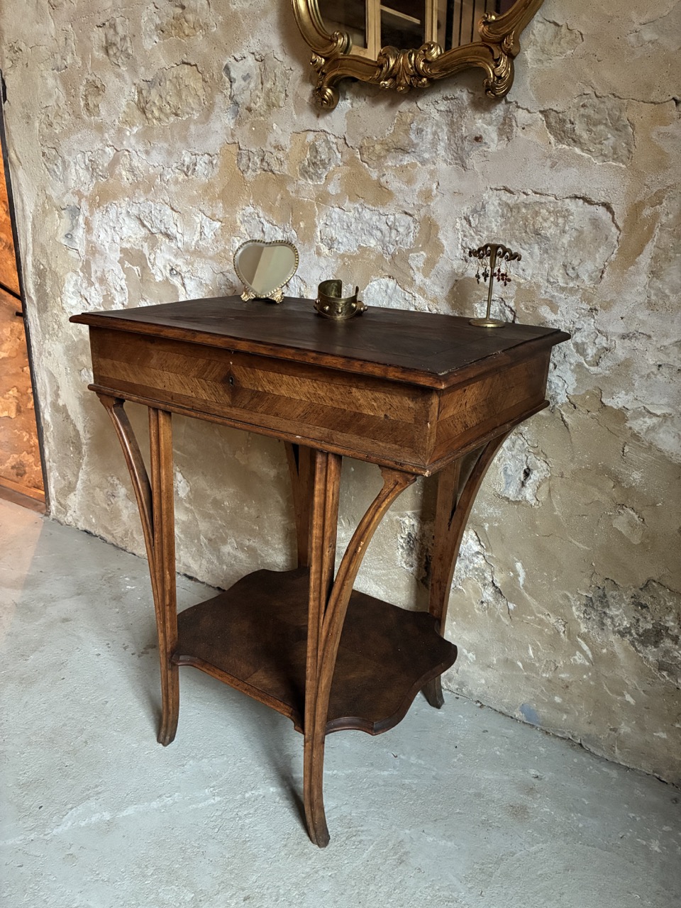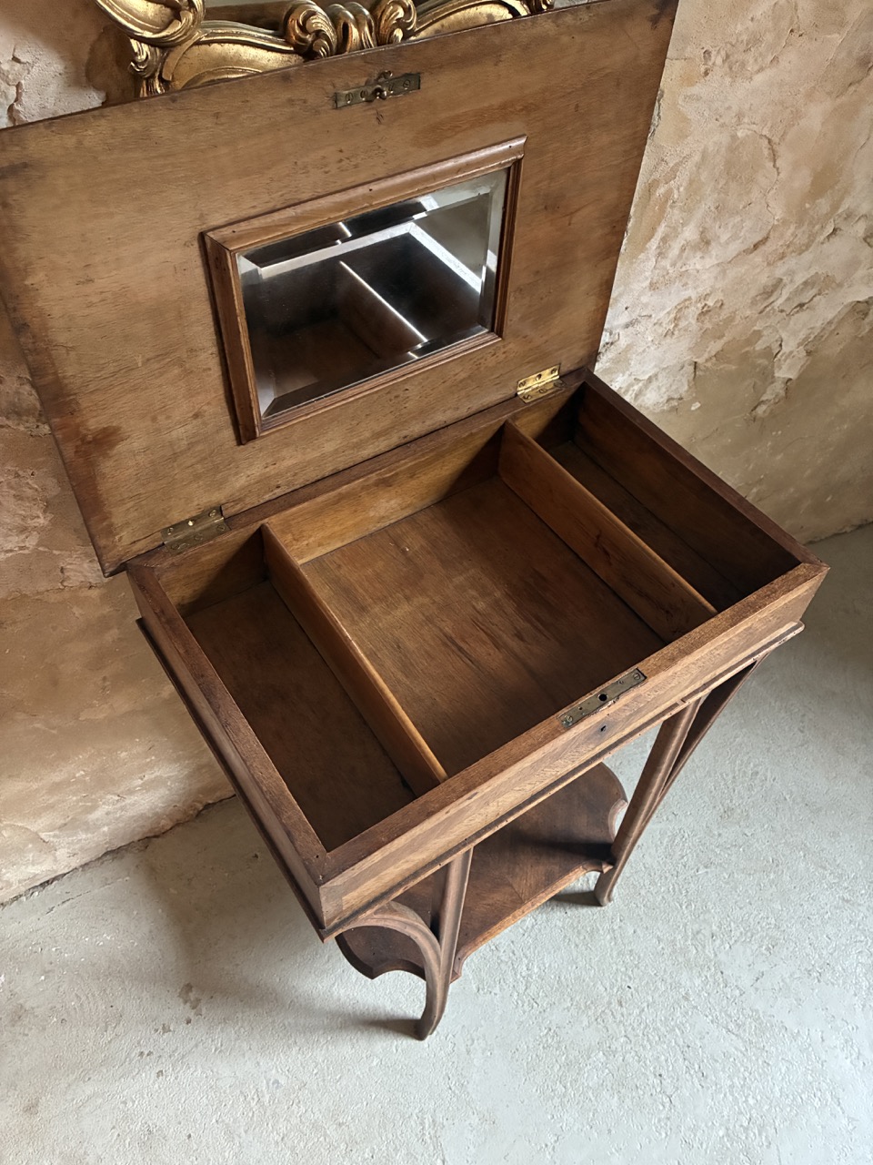 Jolie, cette coiffeuse de style du début du siècle en acajou. Un élément trés déco qui trouvera sa place avec charme dans une chambre ou une salle de bain.
