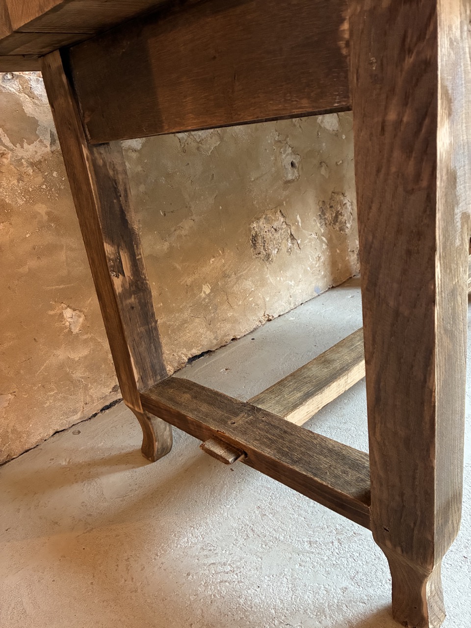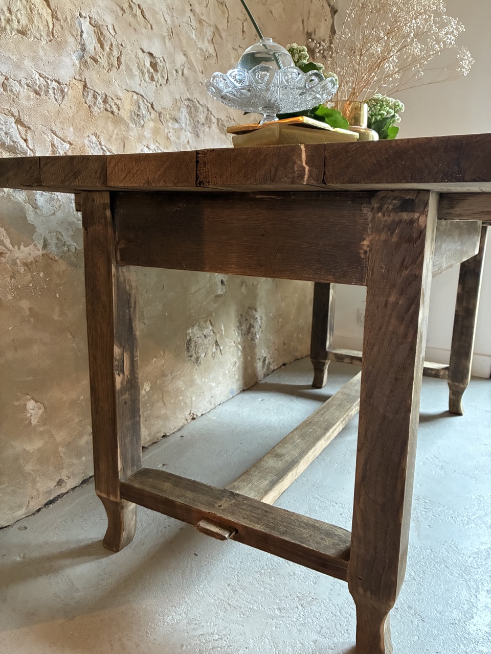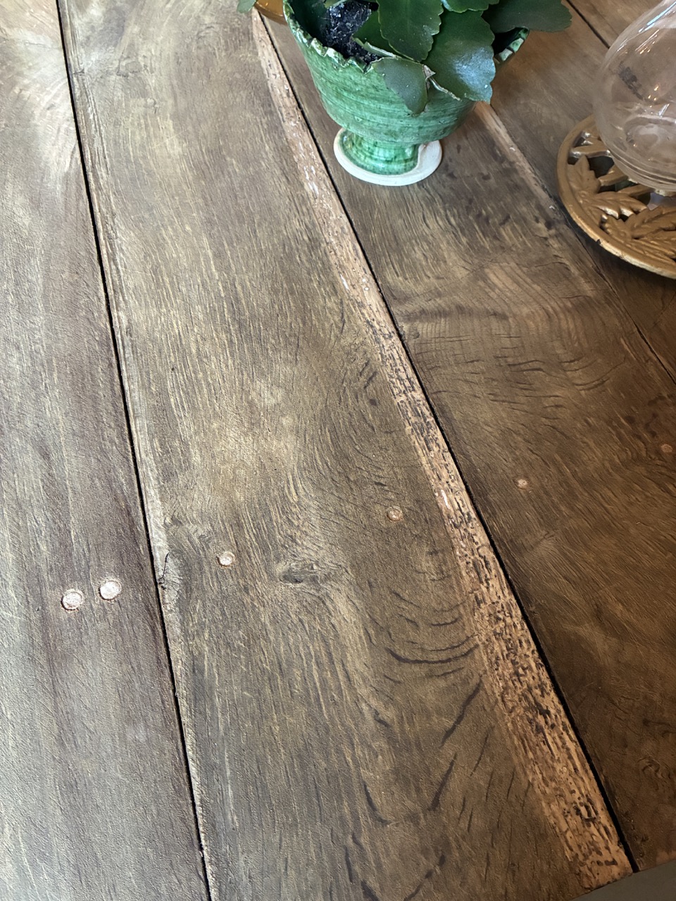 Voici une très belle table en chêne. On aime ses différentes teintes foncées et claires et son bois massif. Elle sera parfaite dans une cuisine dinatoire ou dans une salle à manger. Vous l’adoptez ?