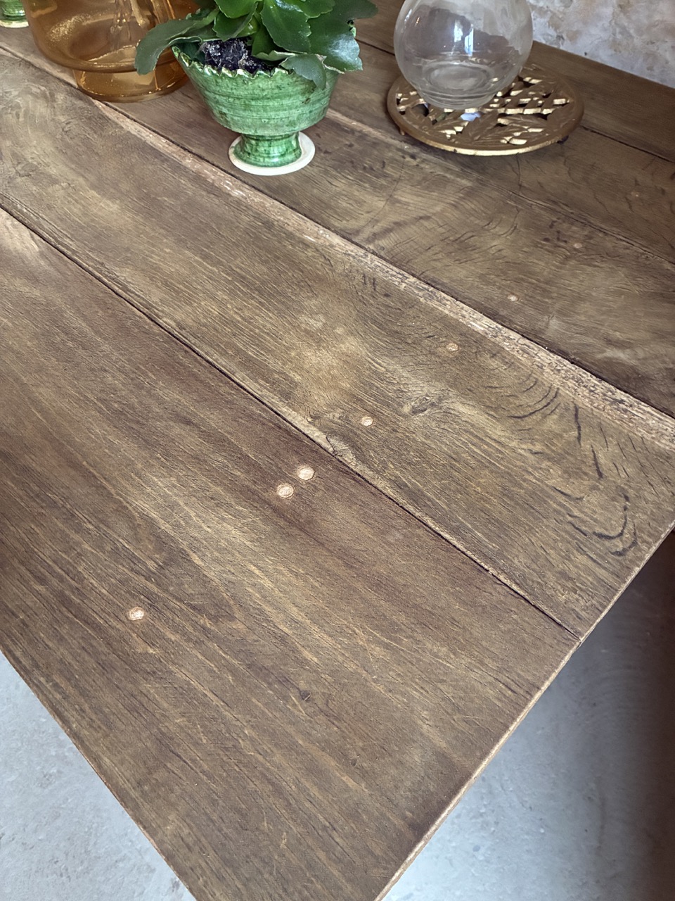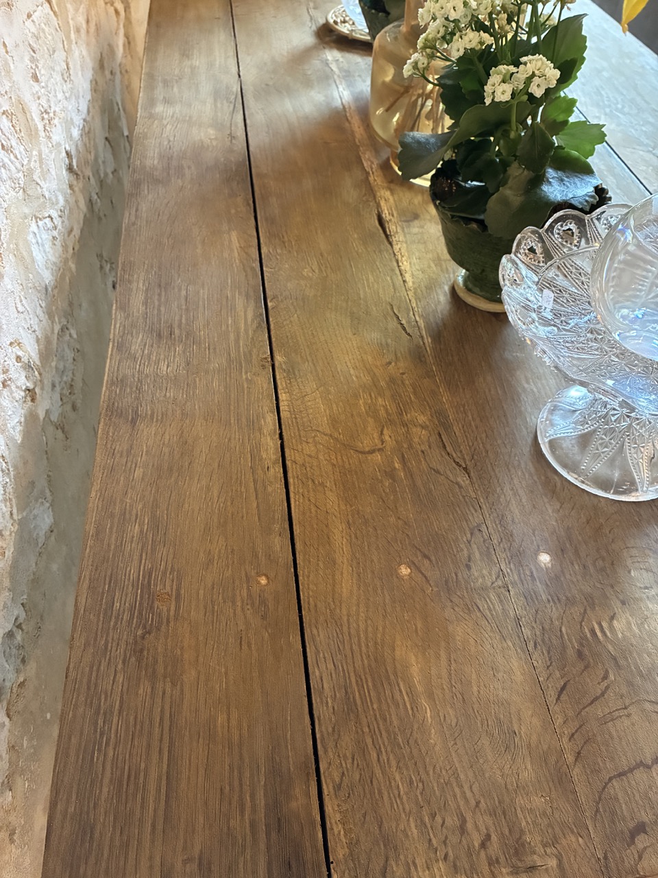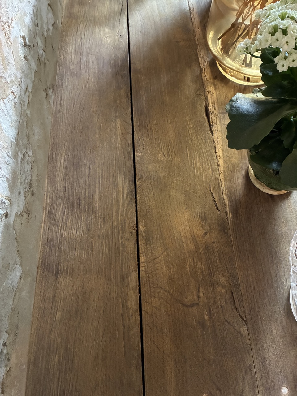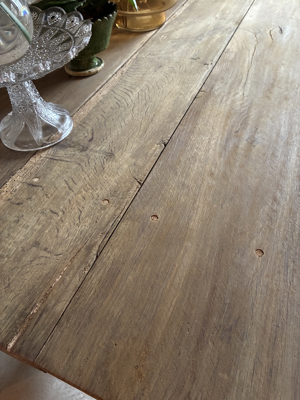 Voici une très belle table en chêne. On aime ses différentes teintes foncées et claires et son bois massif. Elle sera parfaite dans une cuisine dinatoire ou dans une salle à manger. Vous l’adoptez ?
