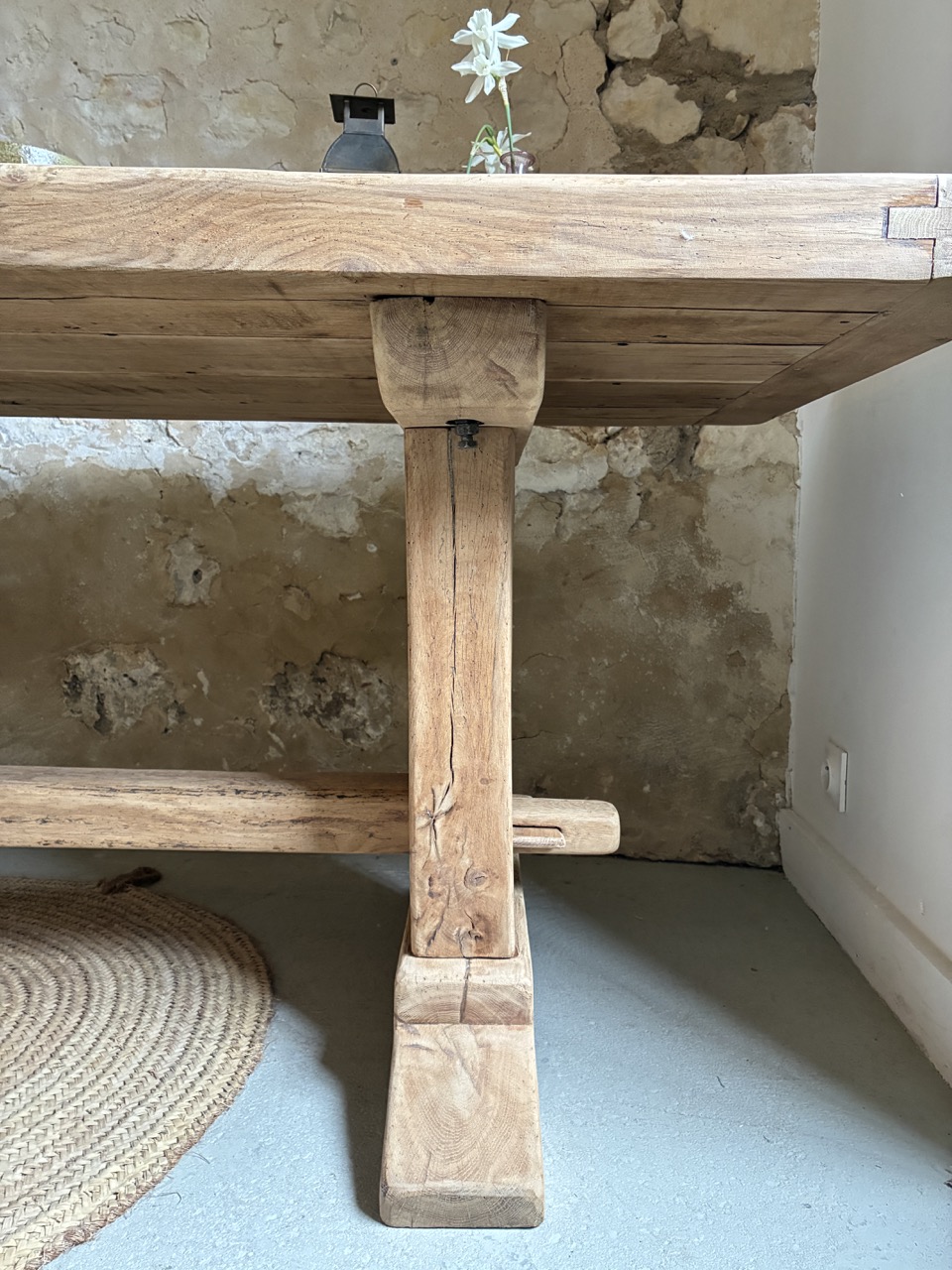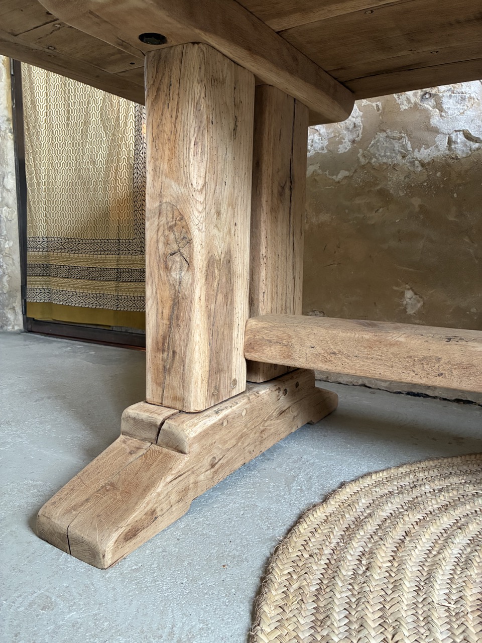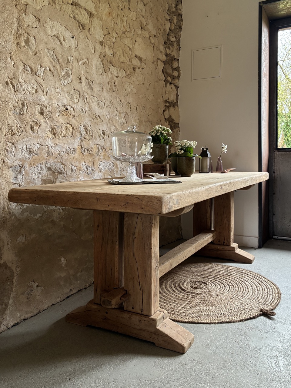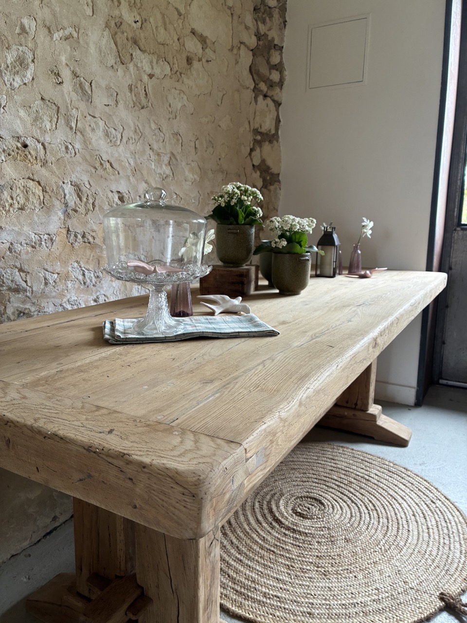 Voici une très belle table monastère tout en chêne. On aime son piètement massif qui offre stabilité et caractère. Cette table peut accueillir entre 8 et 10 convives, idéale pour vos réceptions entre amis ou en famille.