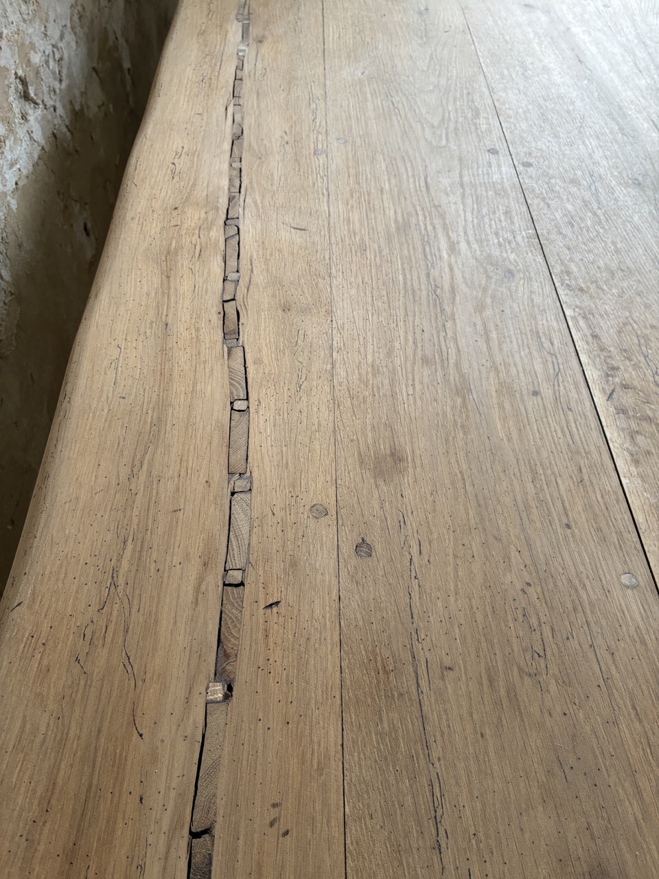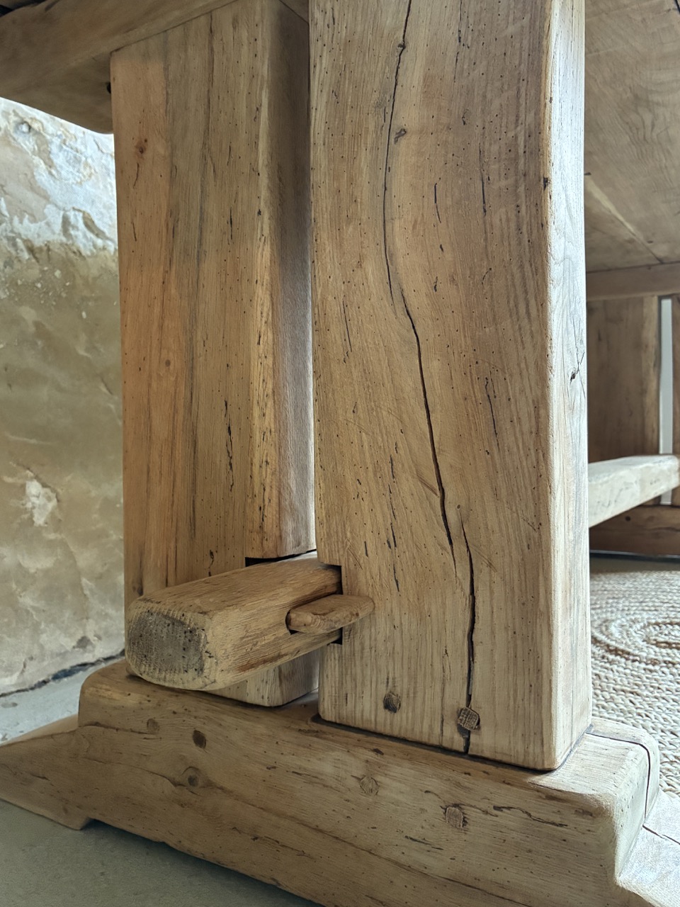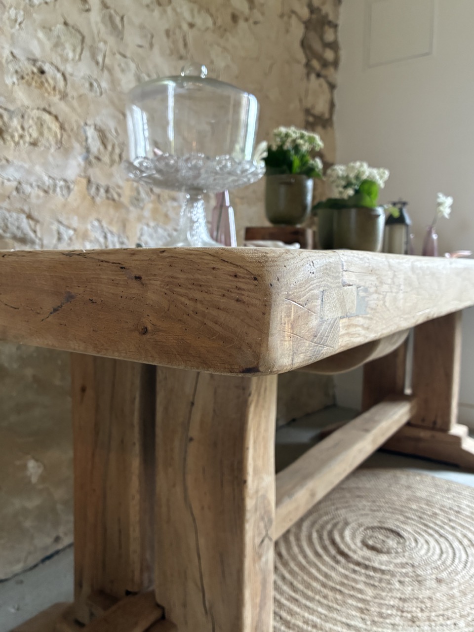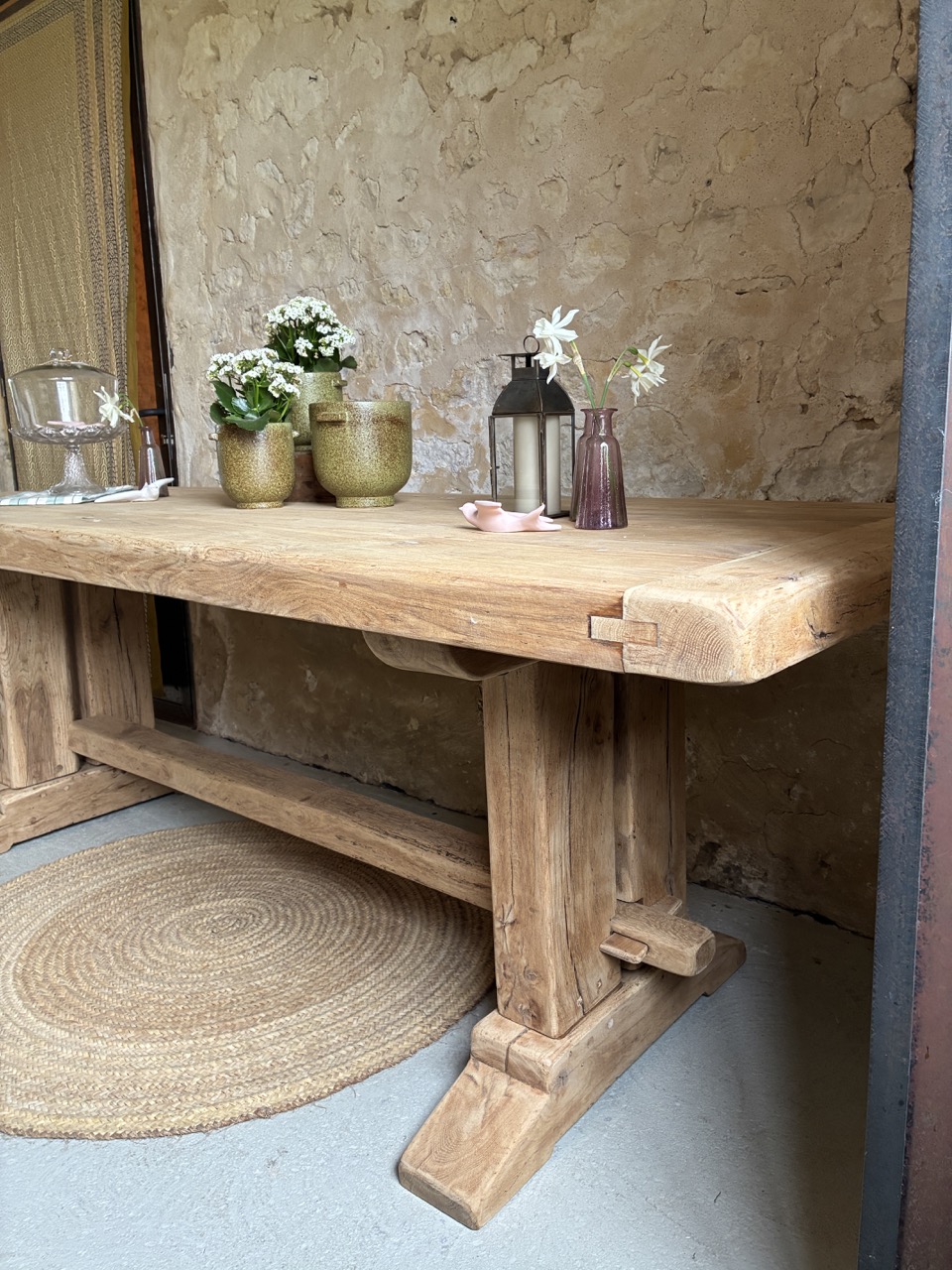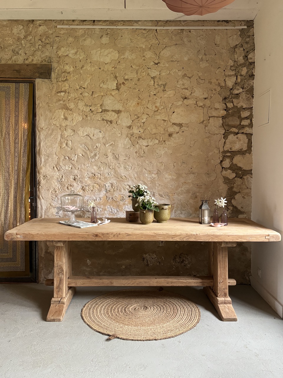 Voici une très belle table monastère tout en chêne. On aime son piètement massif qui offre stabilité et caractère. Cette table peut accueillir entre 8 et 10 convives, idéale pour vos réceptions entre amis ou en famille.