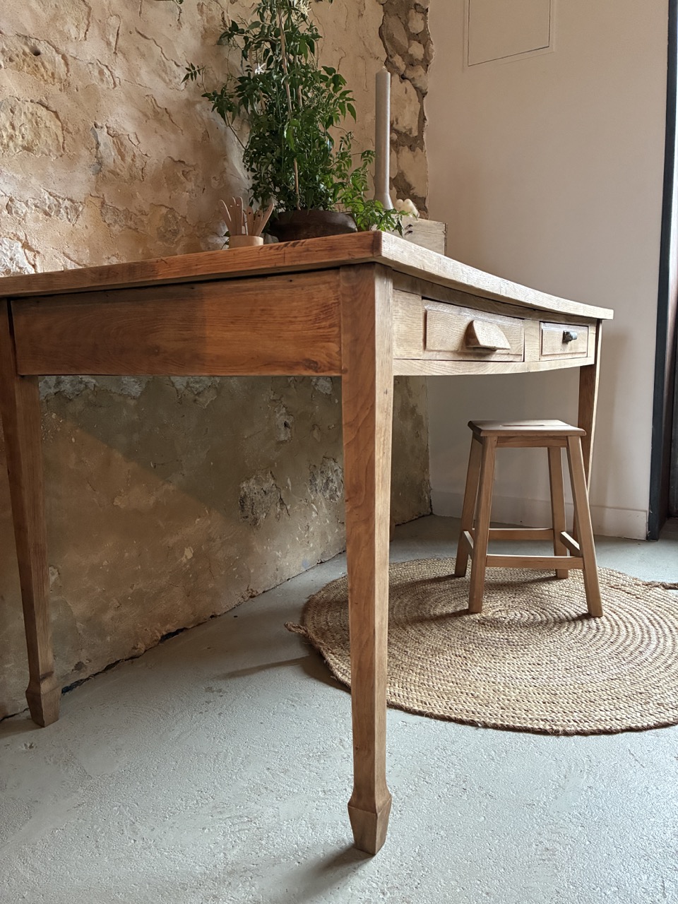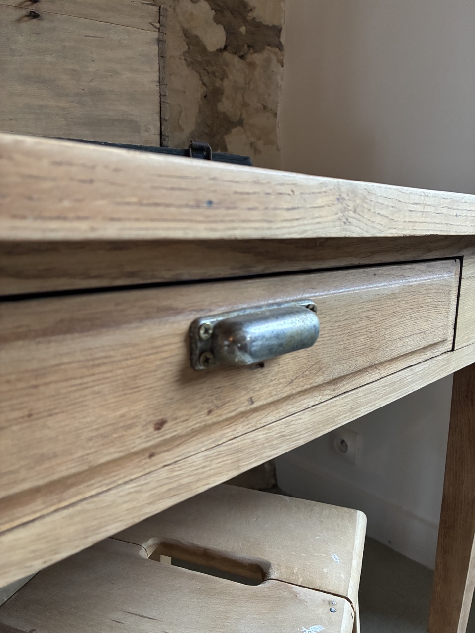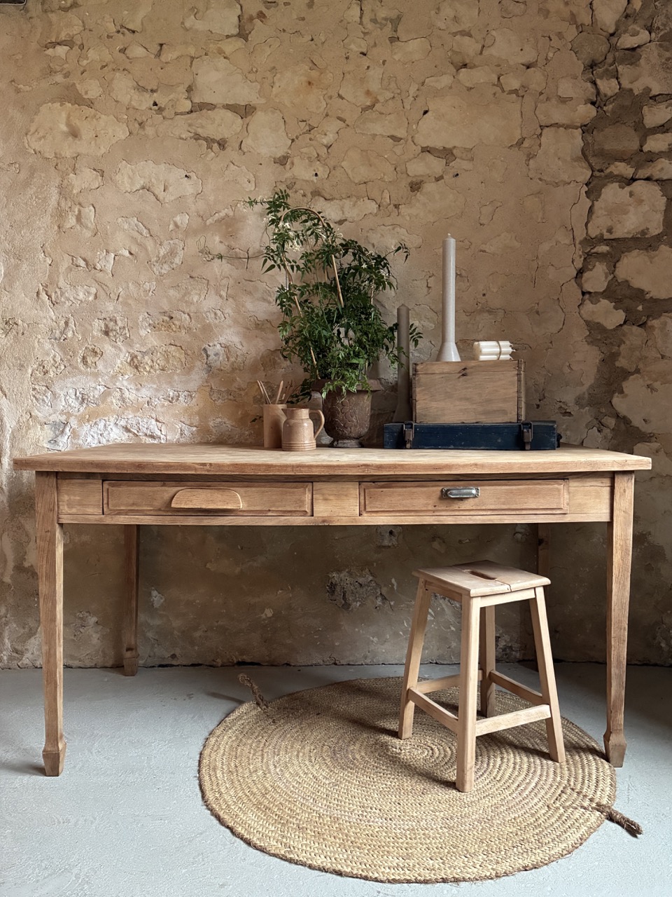 Cette table ou ce bureau 2 tiroirs à l’allure vintage est parfait pour habiller bureau ou une cuisine. On craque pour sa forme de pieds et ses poignées dépareillées.