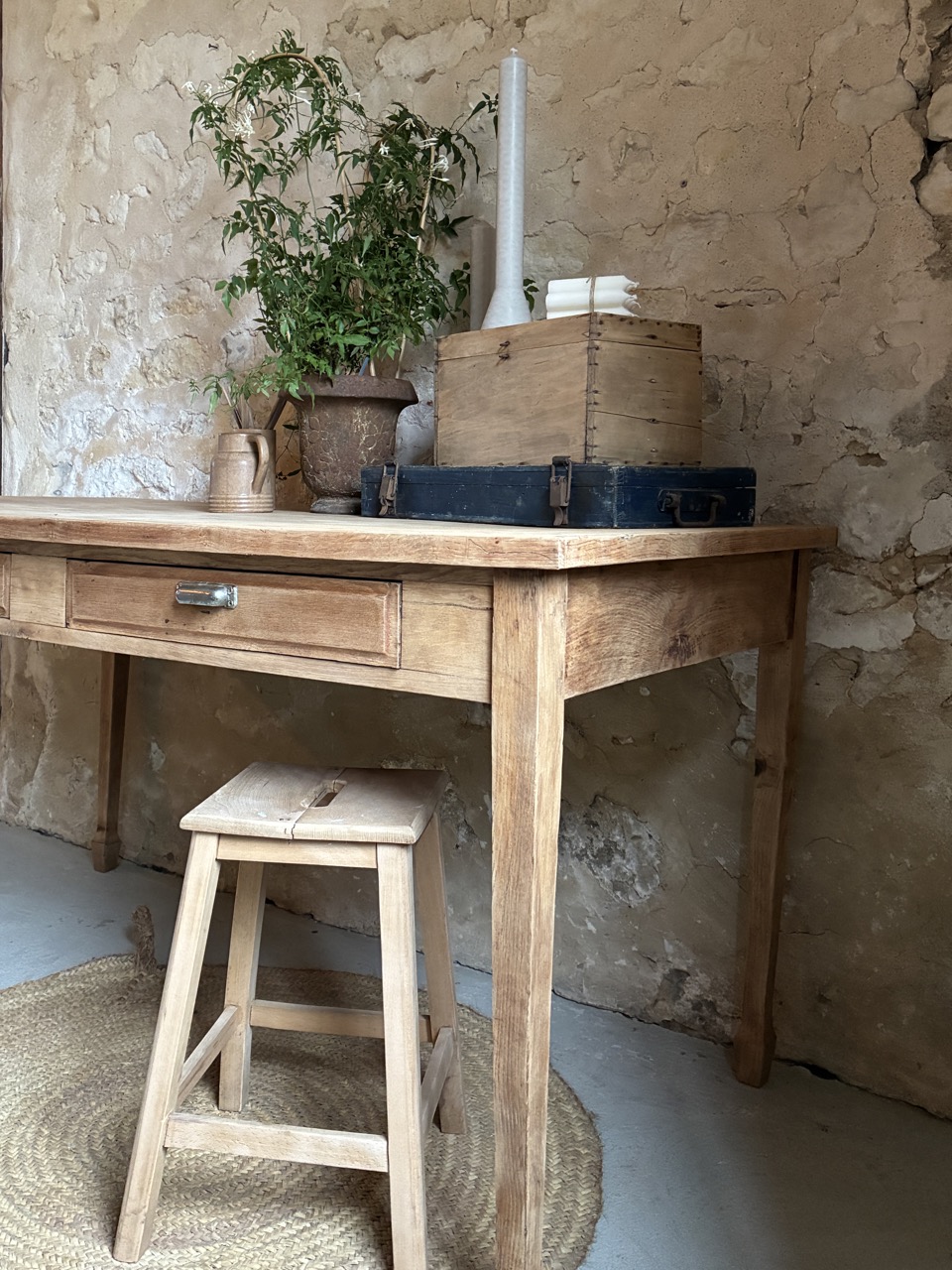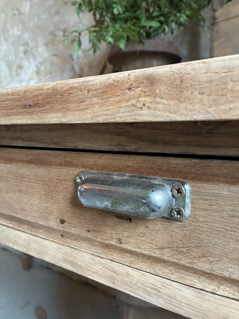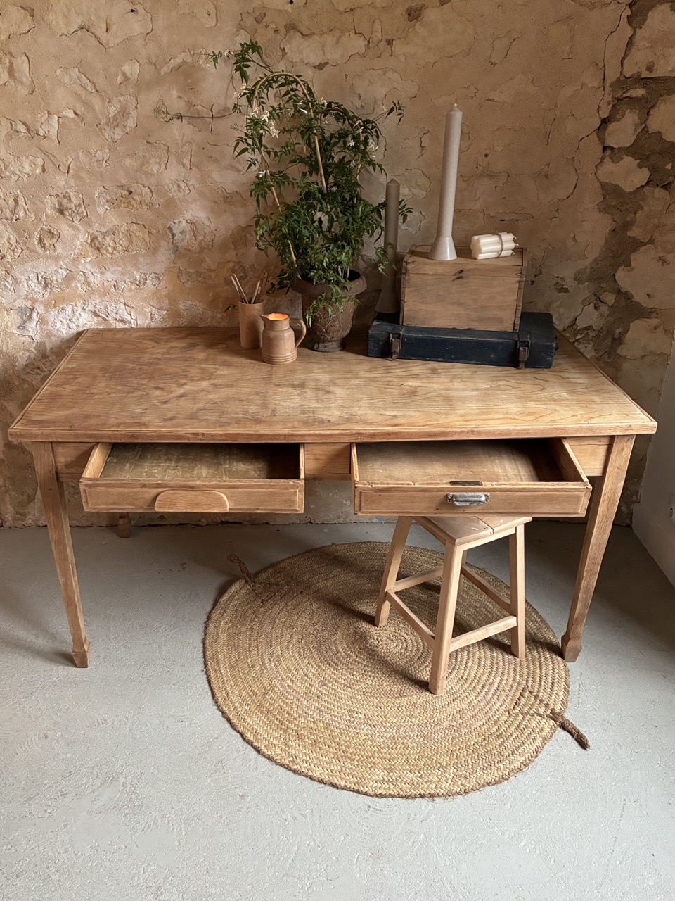 Cette table ou ce bureau 2 tiroirs à l’allure vintage est parfait pour habiller bureau ou une cuisine. On craque pour sa forme de pieds et ses poignées dépareillées.
