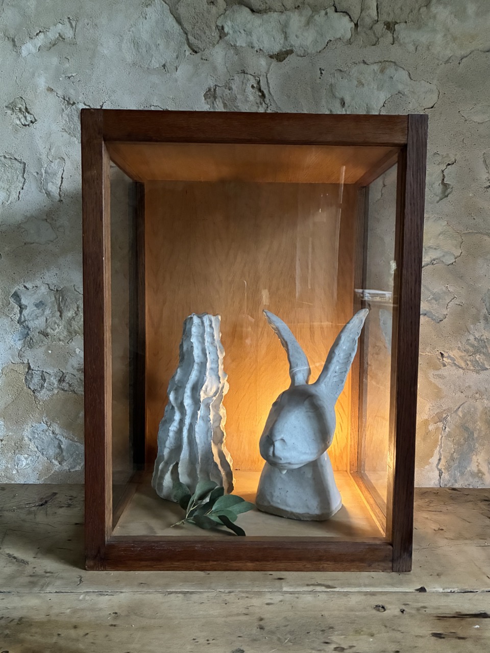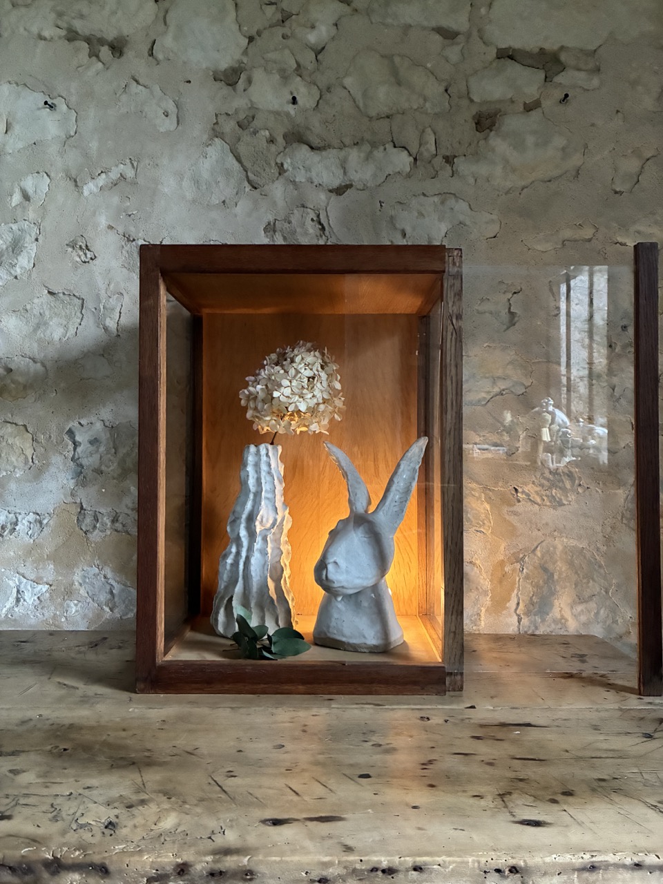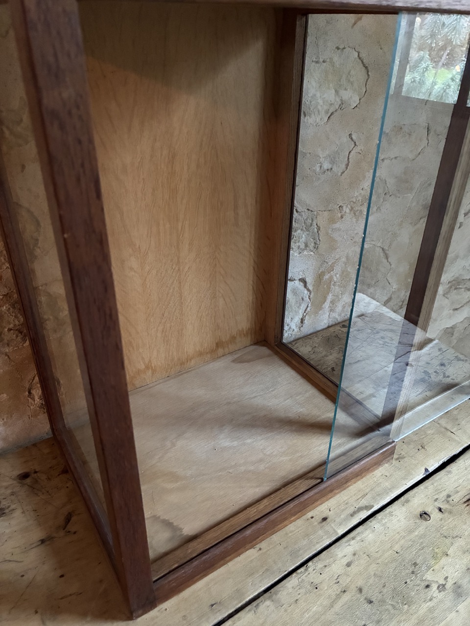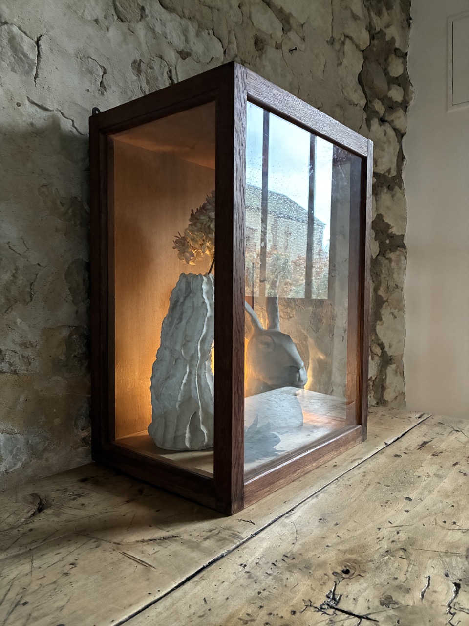 Mignonnerie du jour ! Cette vitrine en chêne avec volet avant coulissant est parfaite pour mettre en avant vos belles pièces de décoration, un bouquet de fleurs séchées, ou même de la lumière. Elle peut soit se poser sur un buffet, une table ou au sol, soit être accrochée au mur grâce à ses attaches en métal.